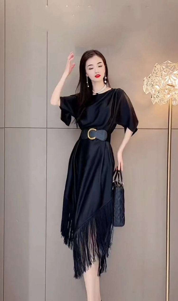 Product information :Collar type: round neckWaist type: high waistColor classification: blackGarment placket: pulloverSize Information:Size: M L XLPacking list:Dress *1