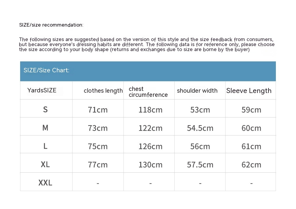 1. Asian sizes are 1 to 2 sizes smaller than European and American people. Choose the larger size if your size between two sizes. Please allow 2-3cm differences due to manual measurement. 2. Please check the size chart carefully before you buy the item, if you don't know how to choose size, please contact our customer service. 3.As you know, the different computers display colors differently, the color of the actual item may vary slightly from the following images.