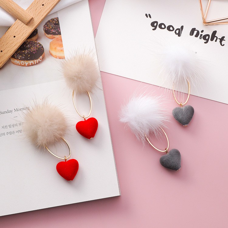 Main material: alloy artificial hair Size: earrings are about 7.4cm long, hair balls are about 3cm in diameter, love is about 1.8cm long. Weighs about 15g (manual measurement is for reference only)
