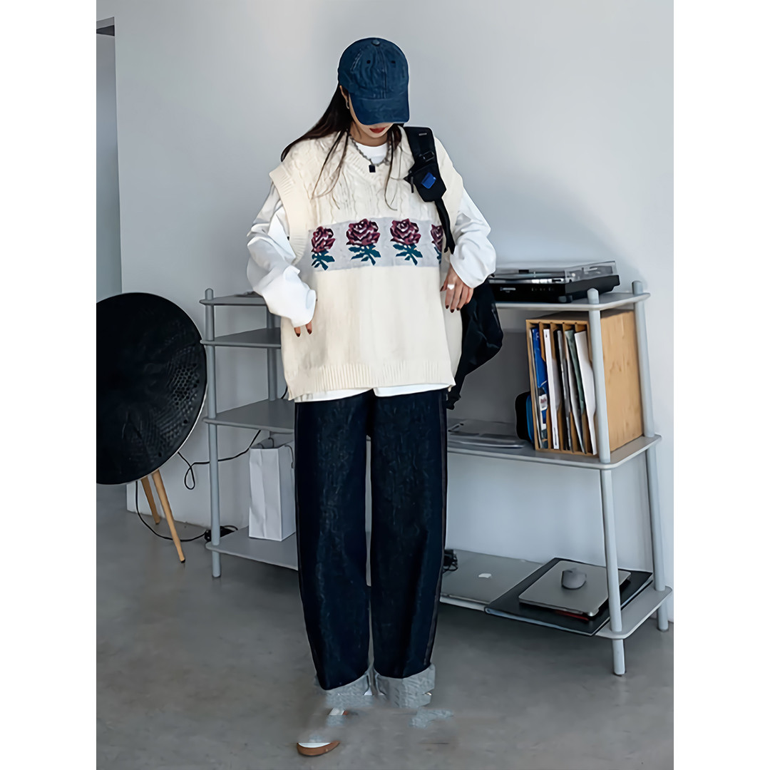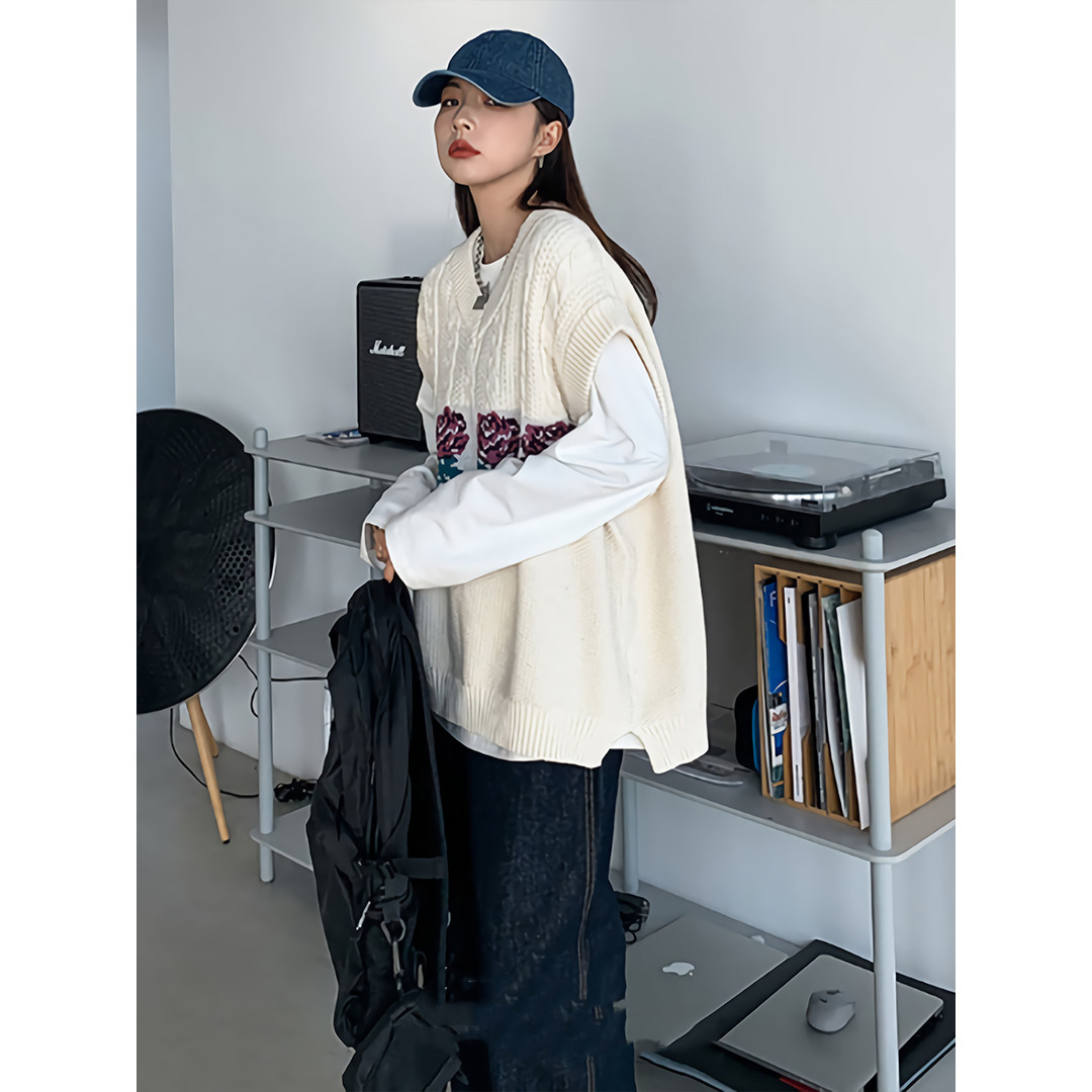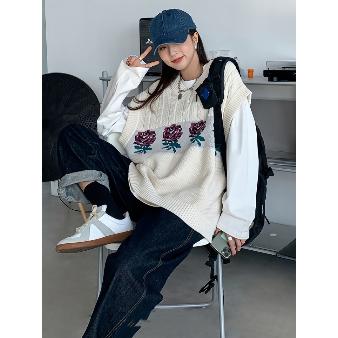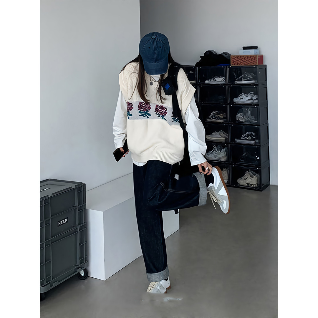 Color classification: Off-white vest, red vest, jeans, off-white vest + long-sleeved T-shirt, red vest + long-sleeved T-shirt, off-white vest + long-sleeved T-shirt + jeans, red vest + long-sleeved T-shirt + jeans listed