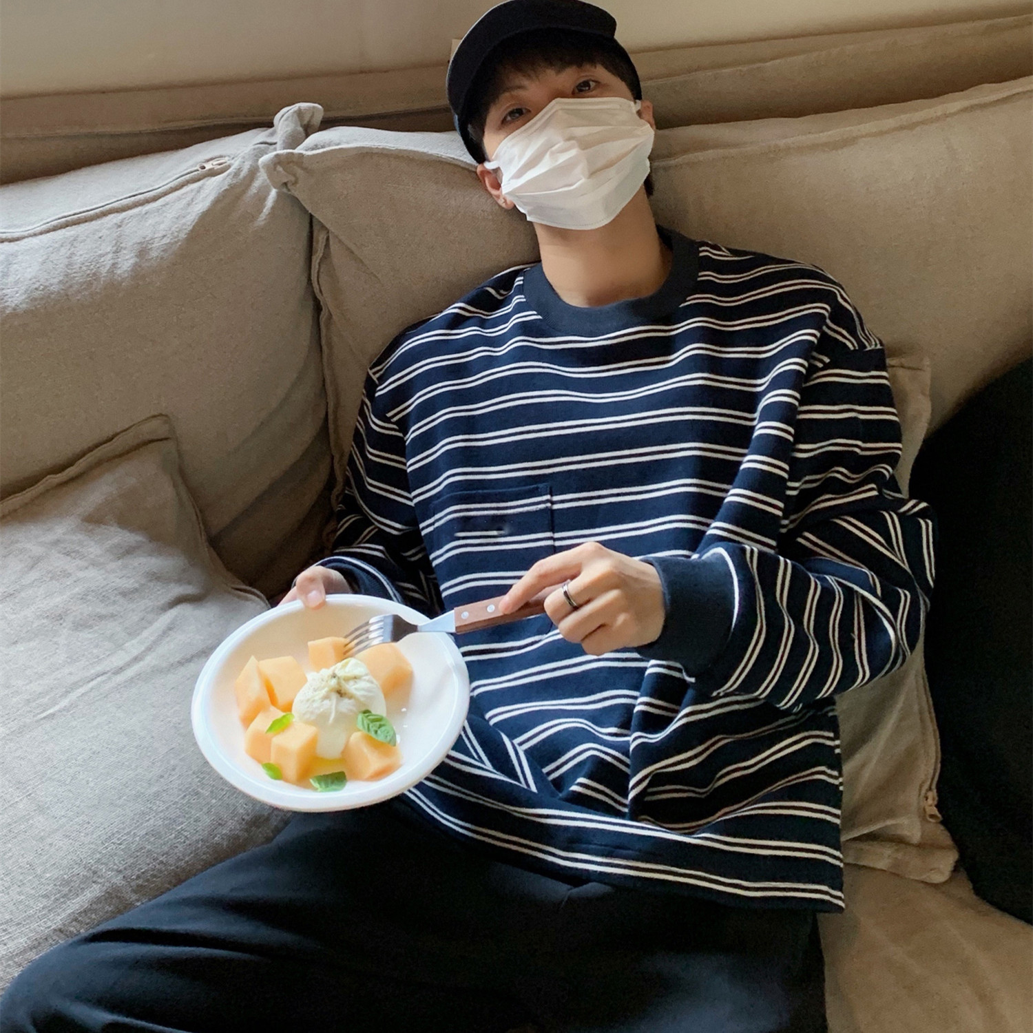 Material: polyesterStyle: LeisureFeatures: Loose fitting, round neckColour: White, navy