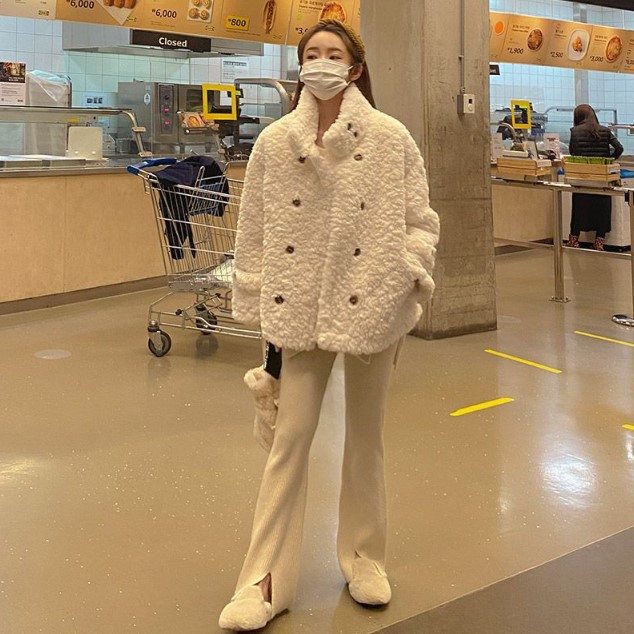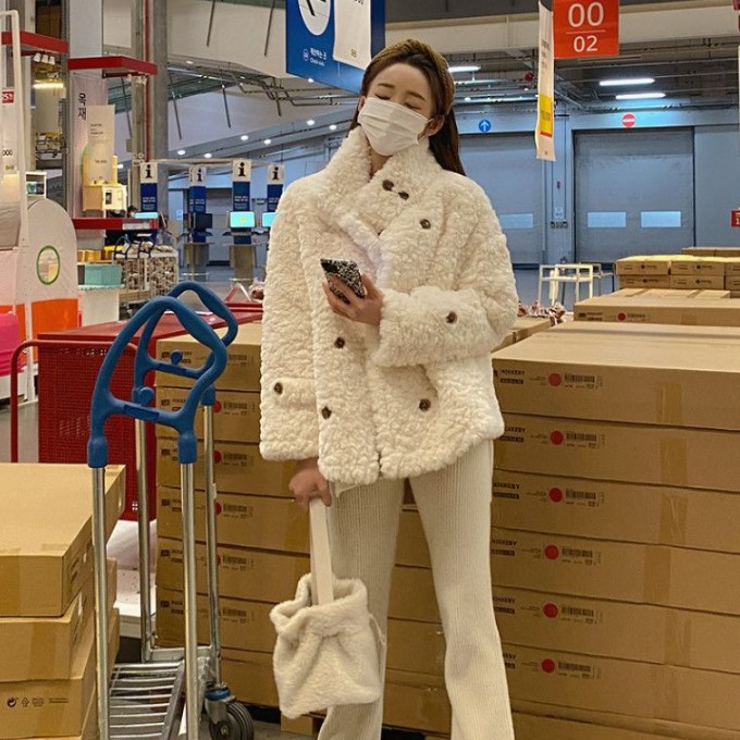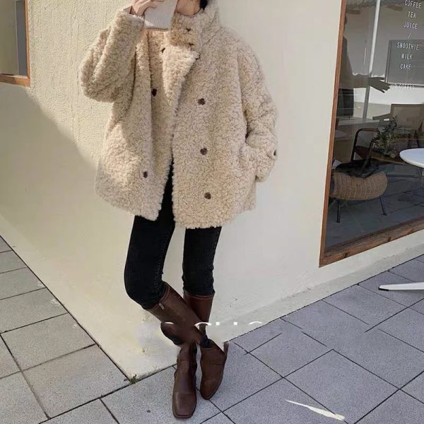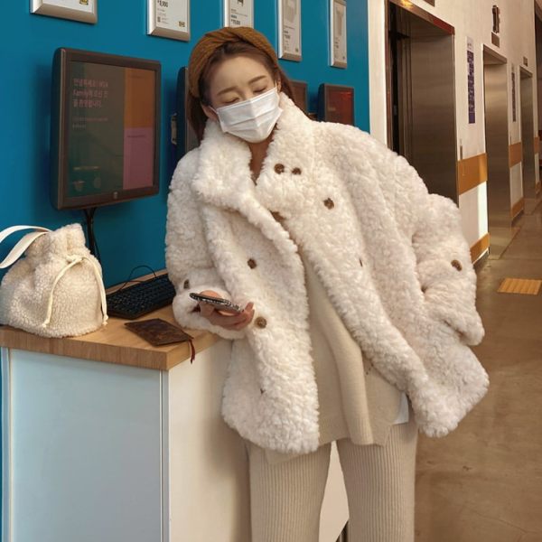 Loose Thick Double-breasted Faux Lamb Wool Coat