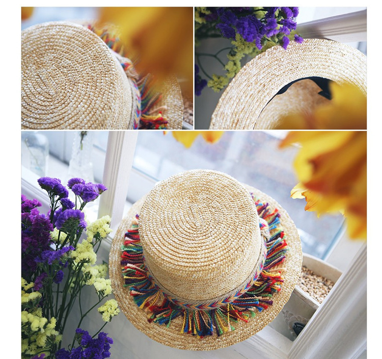 Product information:Product Category: Flat CapApplicable gender: femaleMaterial: StrawColor: black rope, beige ropeSize: M (56-58cm)Packing list:Ladies hat*1