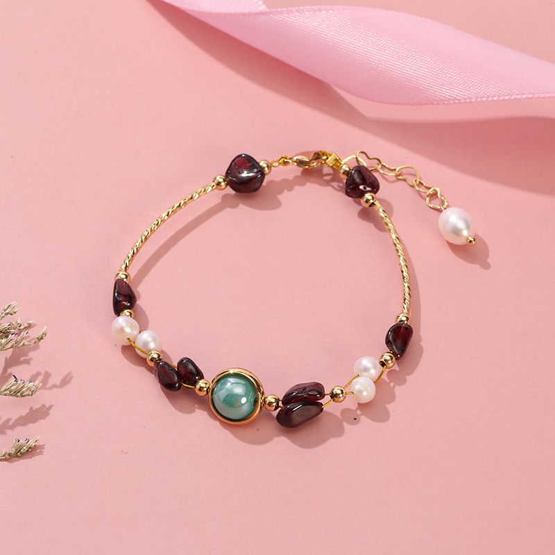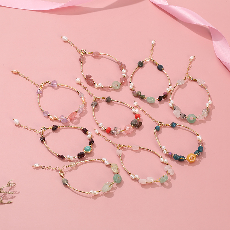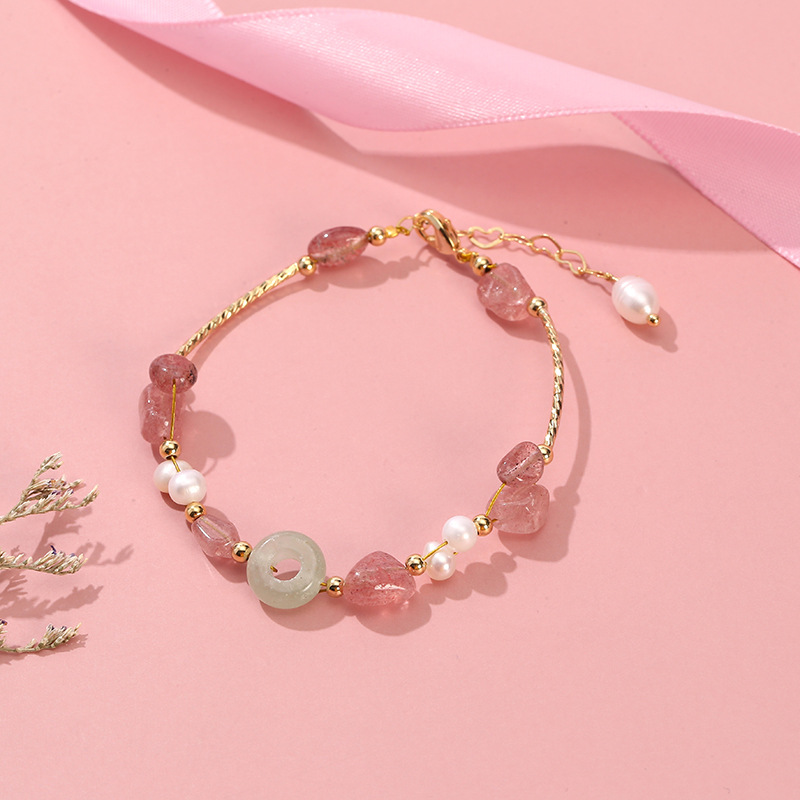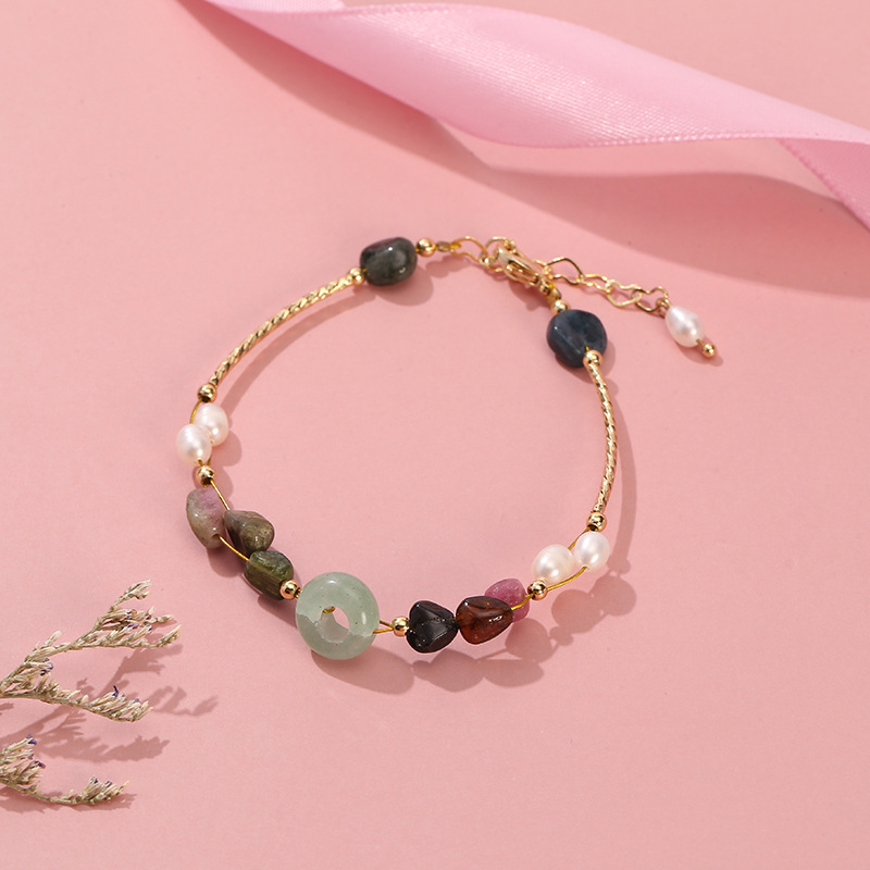 Color: green hair crystal, black hair crystal, pink crystal, garnet, strawberry crystal, tourmaline