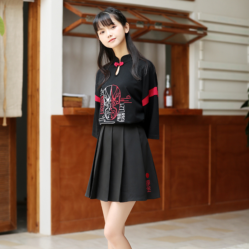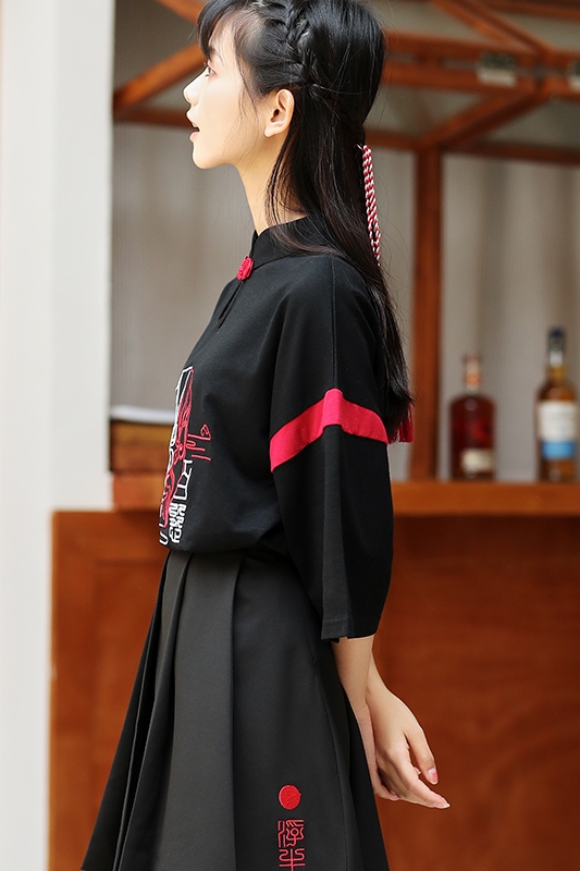 Color: Black top, black skirt