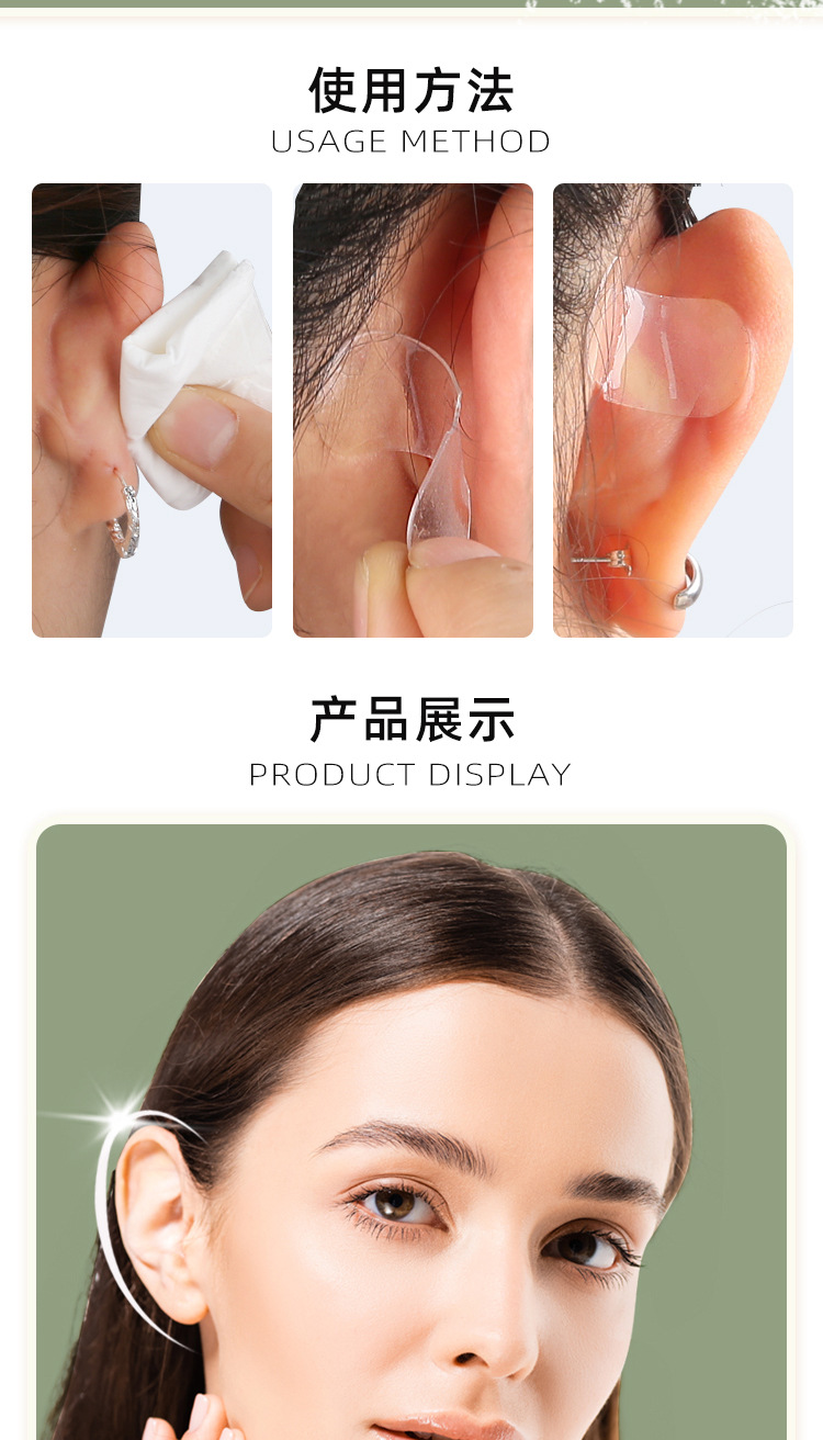 Product information:Pattern: Transparent Color: Frosted (6 stickers/board), transparent (6 stickers/Board) Thickness: 0.1cm Size: free size Material: TPU, Hot Melt Adhesive, back paper Category: disposable supplies Function: ear patch