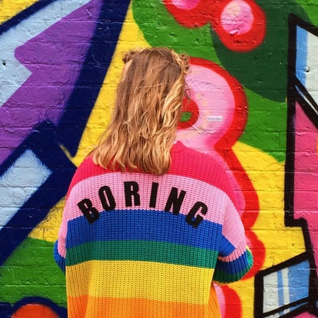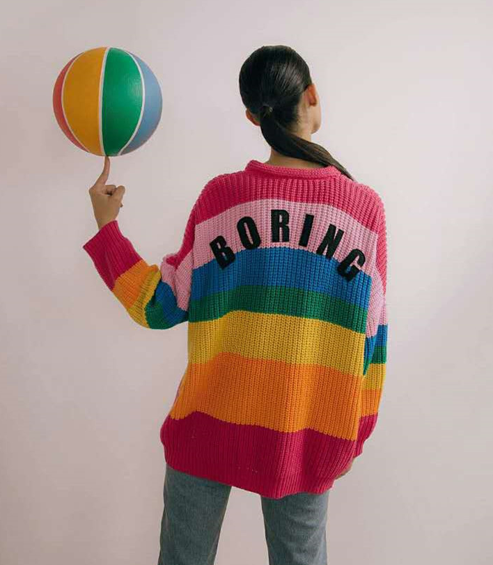 Spring and autumn new rainbow stripes V-neck stretch loose knit jacket cardigan sweater