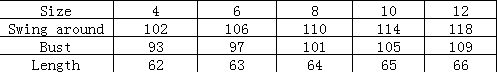 Size: 4, 6, 8, 10, 12
