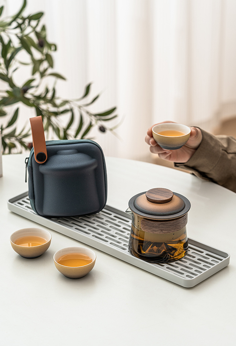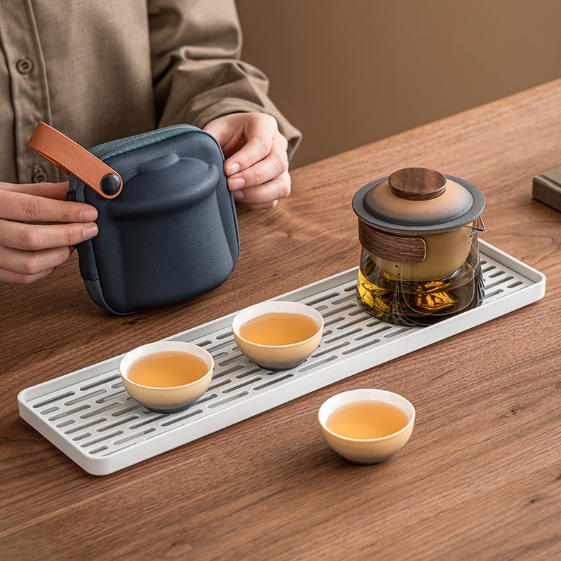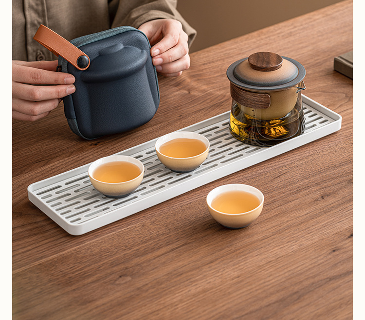 Color: Rizhao Jinshan travel tea set_Qiushan glaze, Rizhao Jinshan travel tea set_Symphonic Green, Rizhao Jinshan travel tea set_beige, Rizhao Jinshan travel tea set_Qiushan glaze draining tray, Rizhao Jinshan travel tea set_symphonic green drain tray, rizhao Jinshan travel tea set_beige drain tray