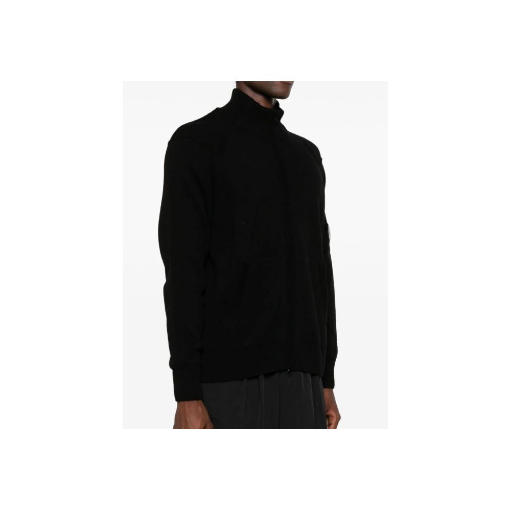 c.p. Company, cardigan sweatshirt, black color with side zip pocket on the left side and iconic goggle, front opening with zip and additional front pockets