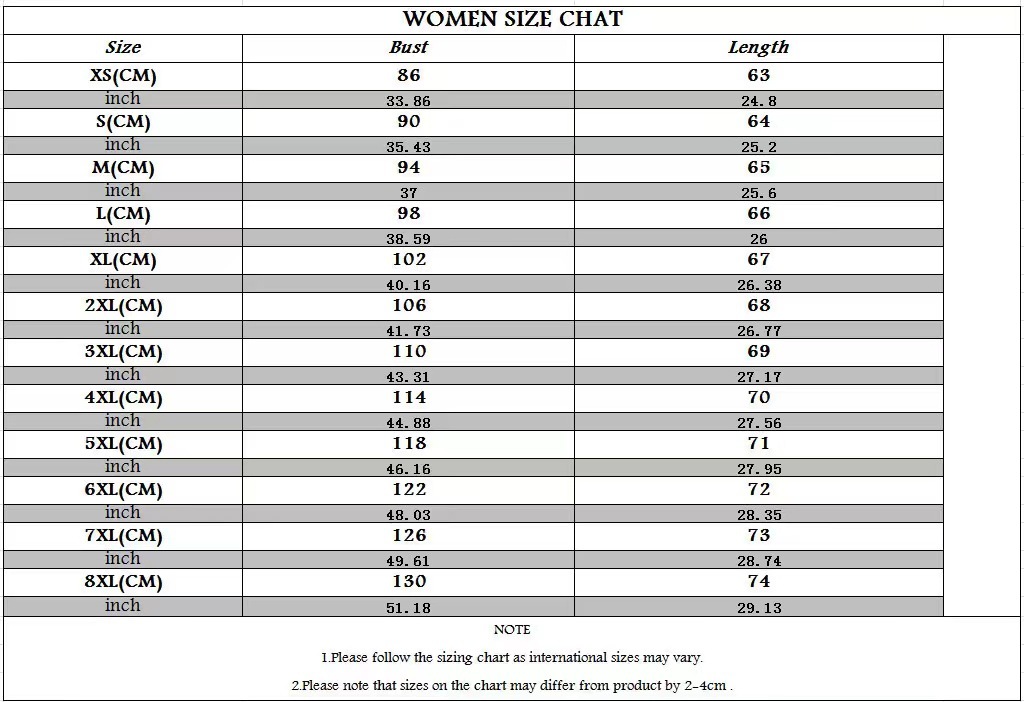 Size: XS,S,M,L,XL,XXL,XXL,XXXXL,5XL,6XL,7XL,8XL