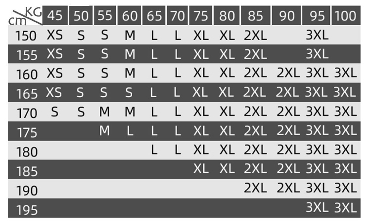 Size: M (recommend 40.00kg-47.50kg,L (recommend 47.50kg-55.00kg,XL (recommend 55.00kg-62.50kg,2XL (recommend 62.50kg-67.50kg,3XL (recommend 67.50kg-72.50kg,4XL (recommend 72.50kg-80.00kg