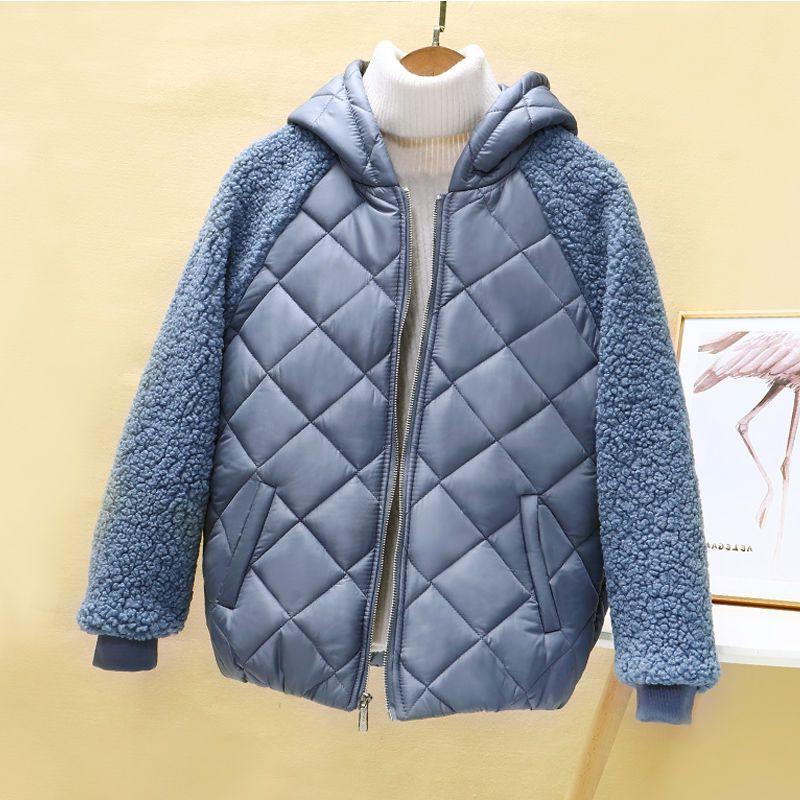 Color: FG hooded green cotton-padded coat, FG hooded milky white cotton-padded coat, FG hooded blue cotton-padded coat, FG hooded black cotton-padded coat