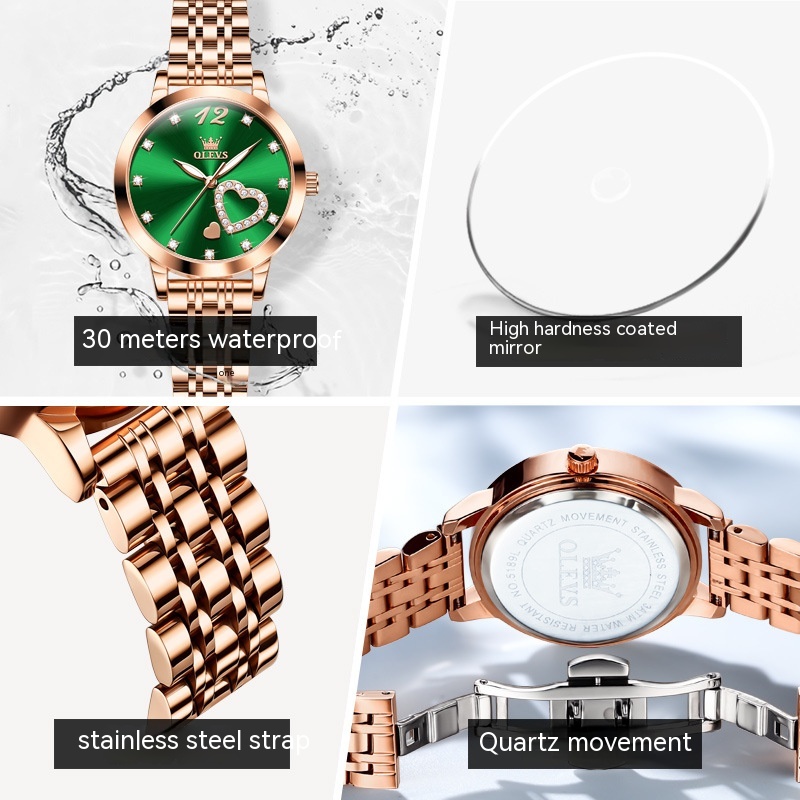 Color: 5189 steel belt full rose pink color female, 5189 steel belt full Rose White Female, 5189 steel belt full Rose black female, 5189 steel belt full rose blue female, 5189 steel belt full Rose green surface female