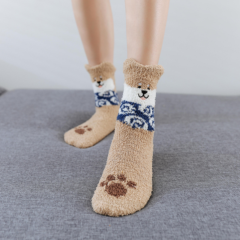 Product age classification: adult socksFabric name: towel/terry fabricMain fabric composition: polyester fiber (polyester)Main fabric ingredient content: 50 (%)Style: JapaneseCraft: JacquardFunction: Keep warm