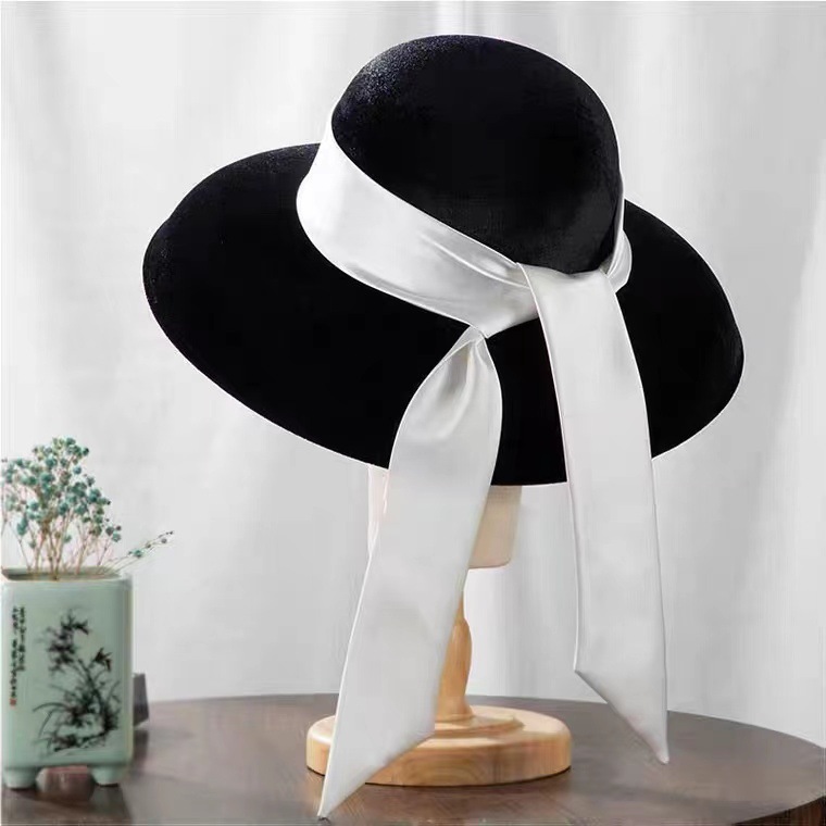 Product information:Product category: top hatSuitable season: winterColour: BlackSize: one sizeFabric name: polyesterEaves length: about 10cmHeight: about 12cmDiameter: about 38cmPacking list:Ladies hat*1