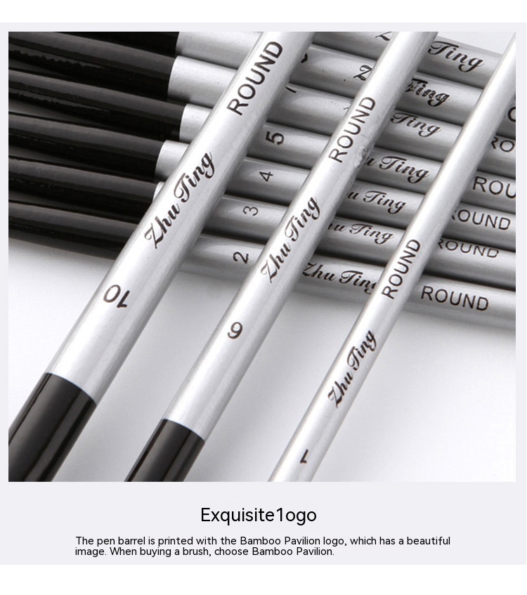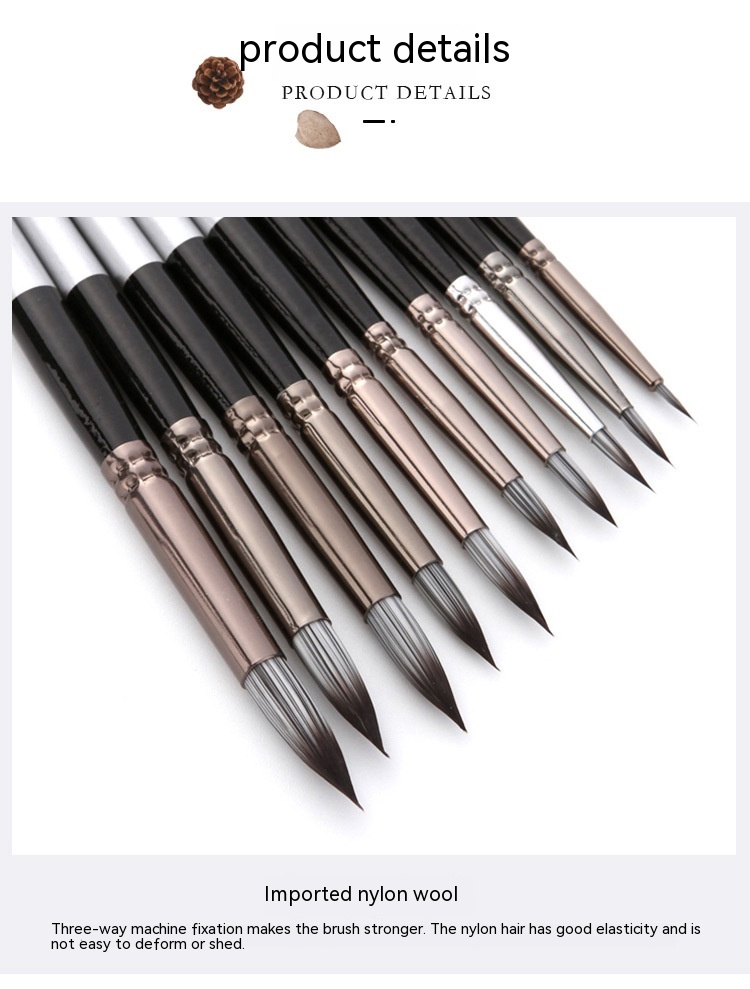 Nylon Hair Brush Silver Gray Rod Round Front Watercolor Oil Painting Set Hook Line Pen Soft
