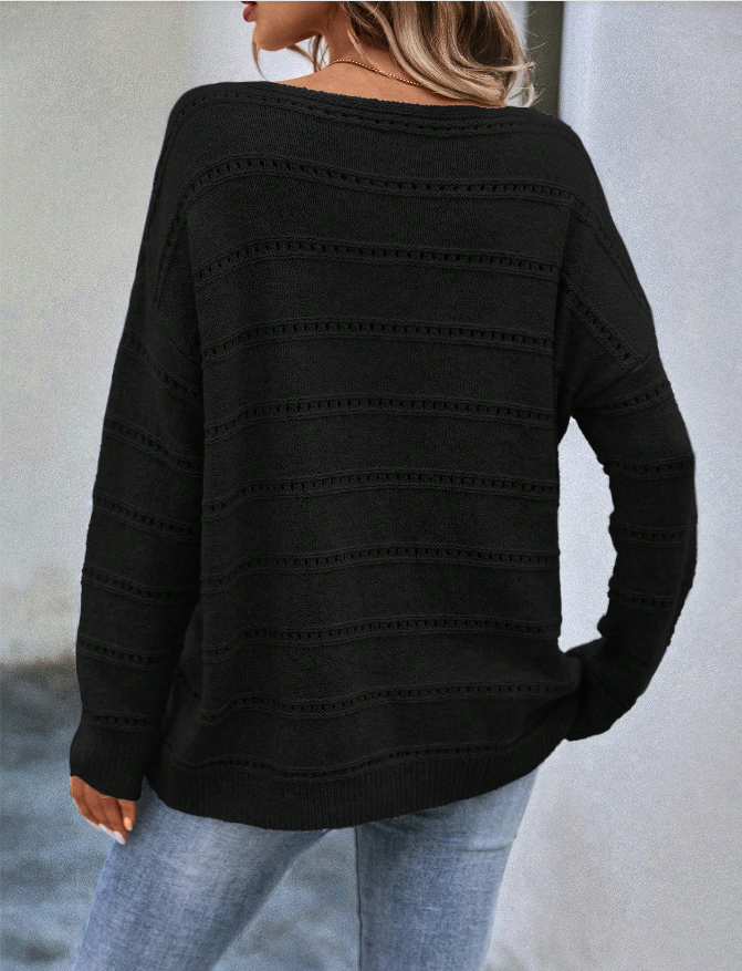 Pointelle Knit Drop Shoulder Sweater