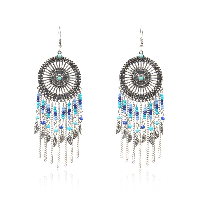 Beaded fringed hollow earrings