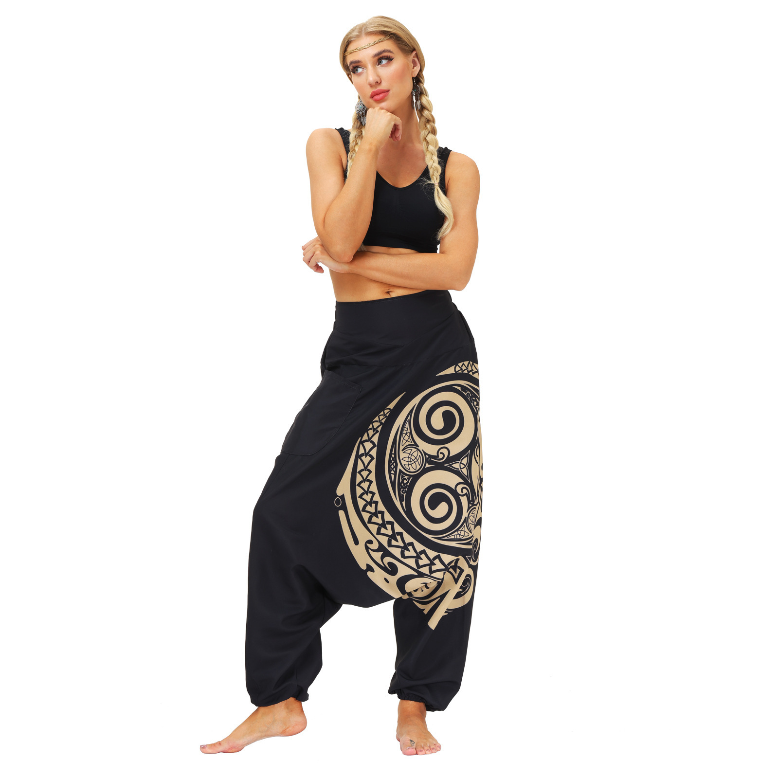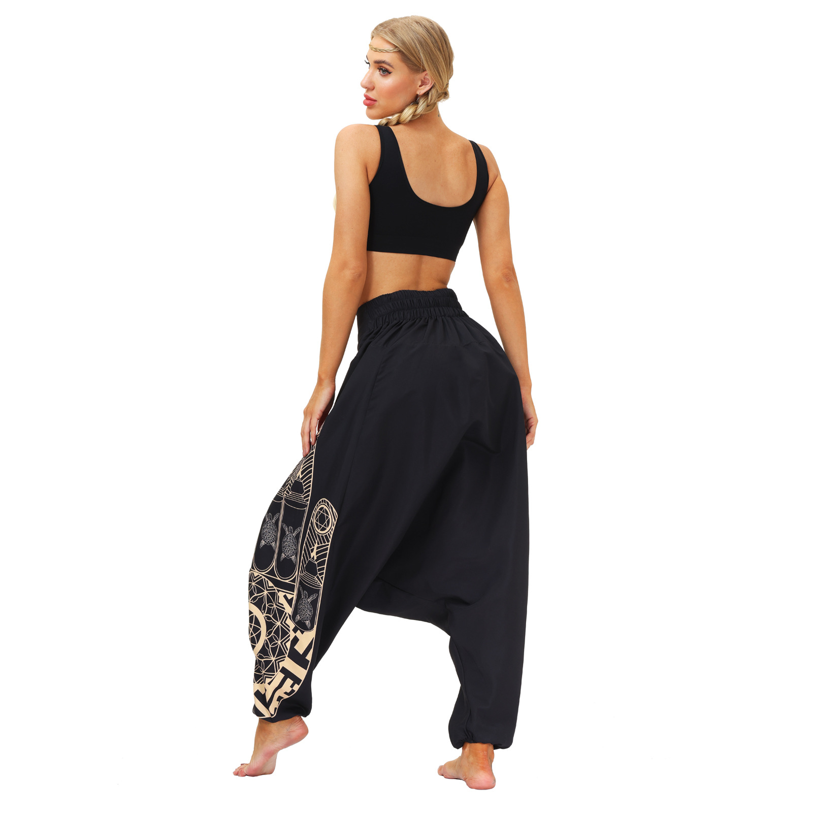 Popular elements: pattern, even crotch, hip-hop style, harem pants