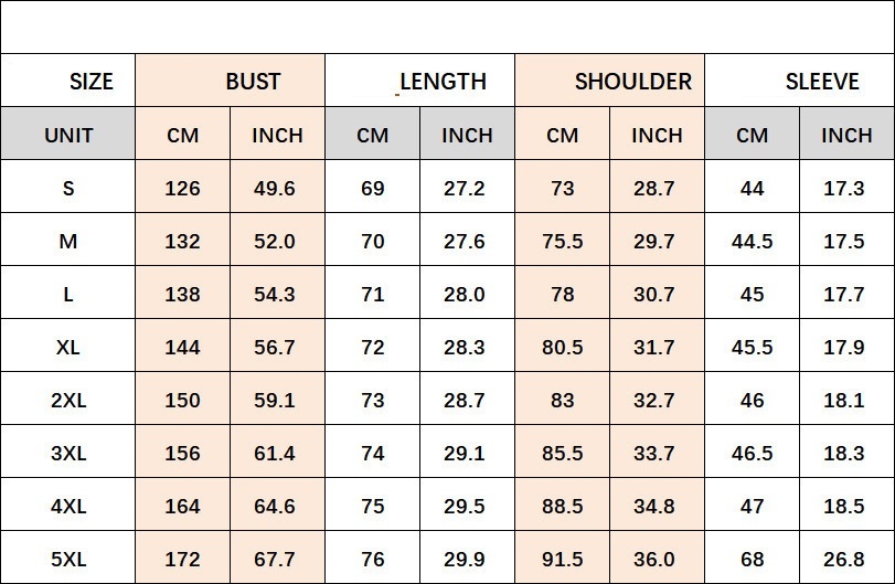 Size: S,M,L,XL,2XL,3XL,4XL,5XL