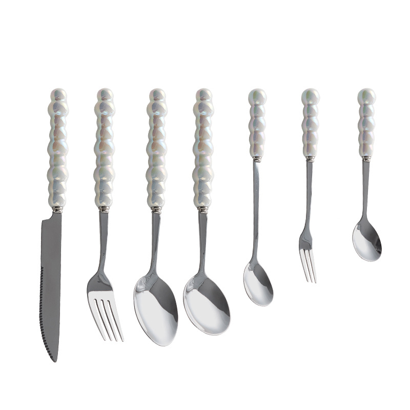Light Luxury Ceramic Pearl Handle Knife Fork And Spoon Creative Stainless Steel Tableware