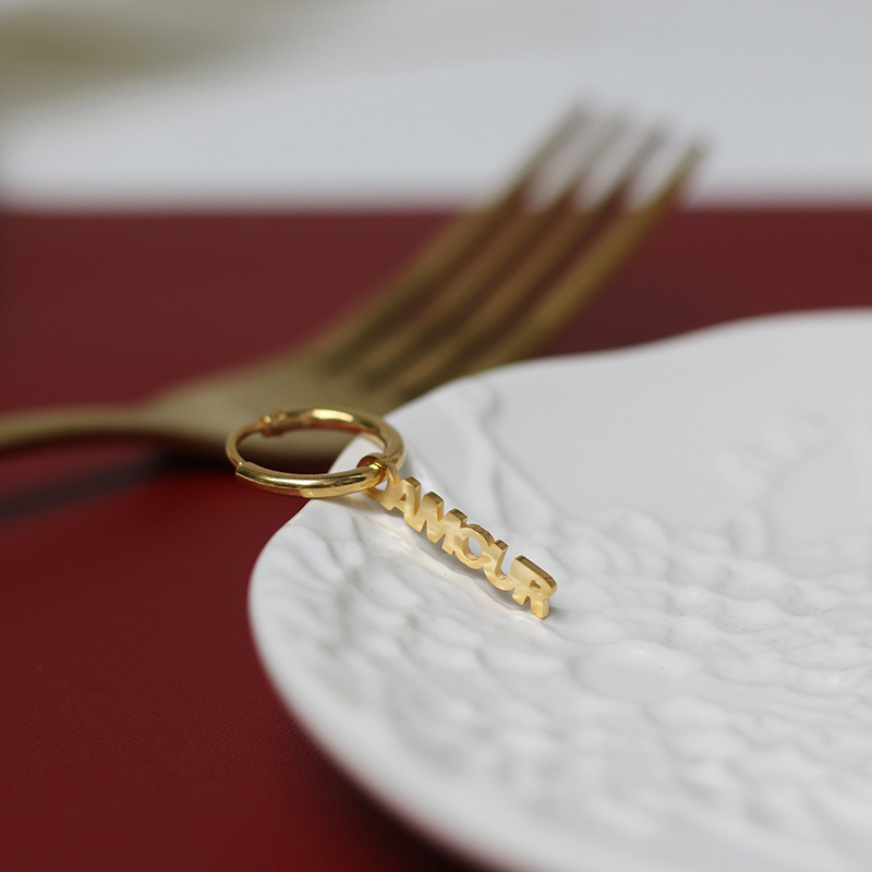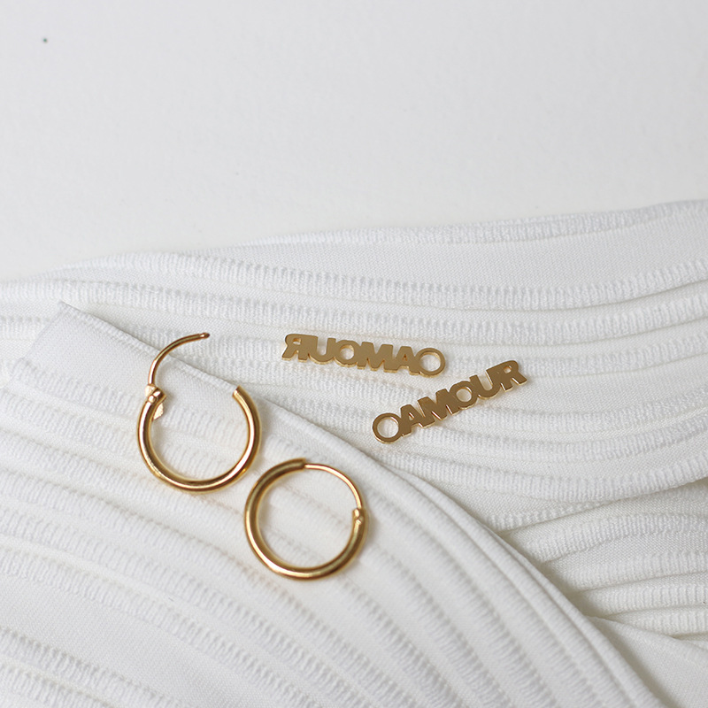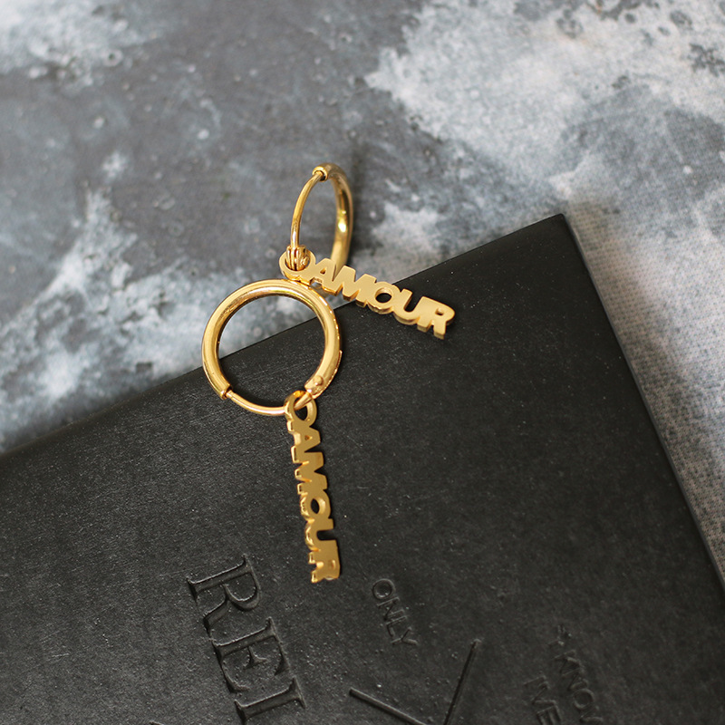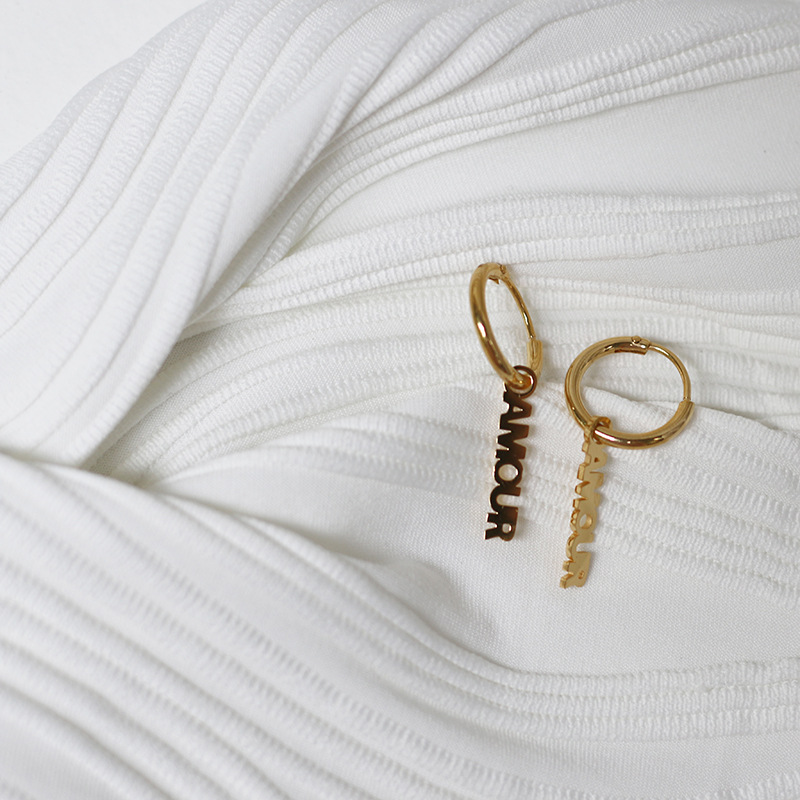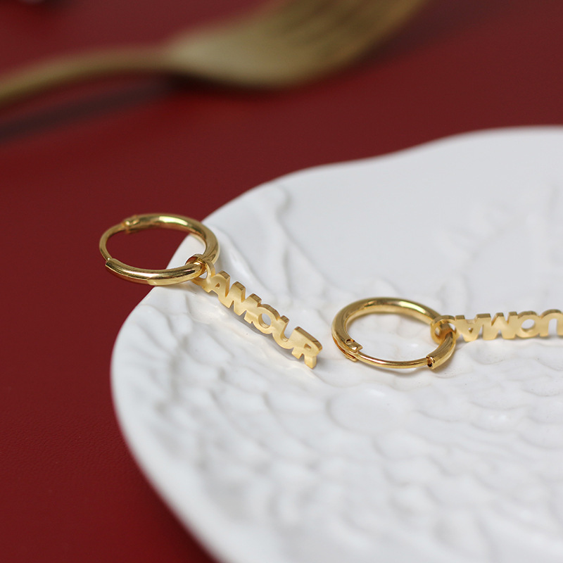 Material: Titanium steelStyle: Europe and AmericaStyle: Women'sShape: Letters/Numbers/TextTreatment process: Inlaid silverPackaging: Individually packedColor: AMOUR earringsApplicable people:Female