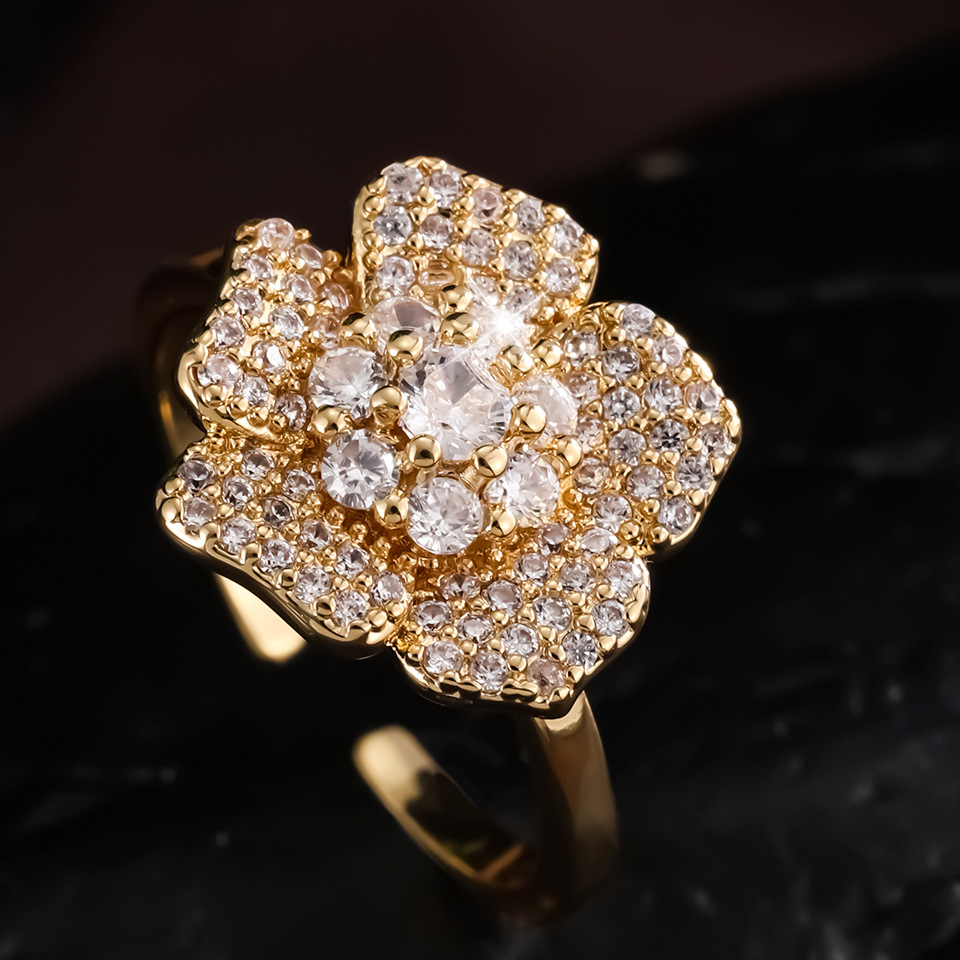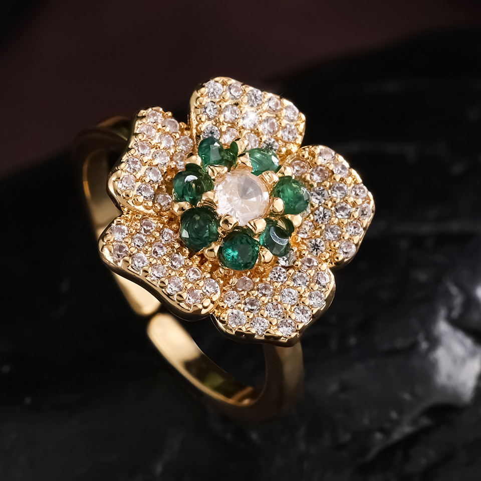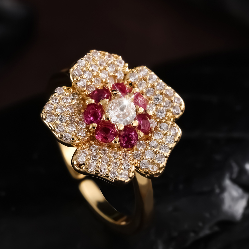 Product information:Treatment Process: inlaid zircon Color: E2881 Rose Red, E3305 orange red, E3306 Blue, E3307 Green Applicable population: Female Material: Copper Shape: Flower
