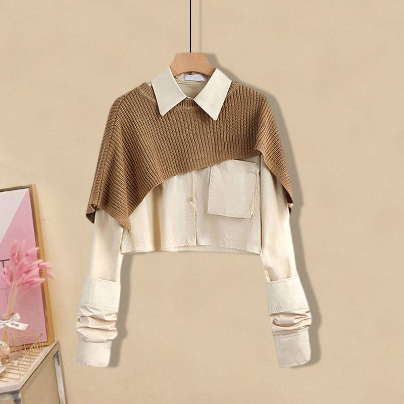 Color: gray shawl (single piece), apricot shawl (single piece), white shirt (single piece), apricot shirt (single piece), black pants, blue pants, gray shawl + white shirt (two piece set), Apricot shawl + apricot shirt (two-piece suit)