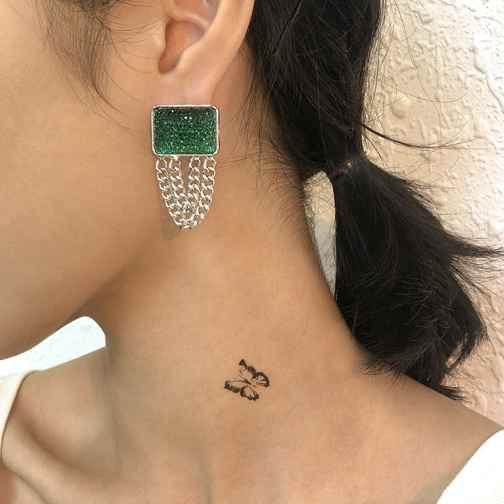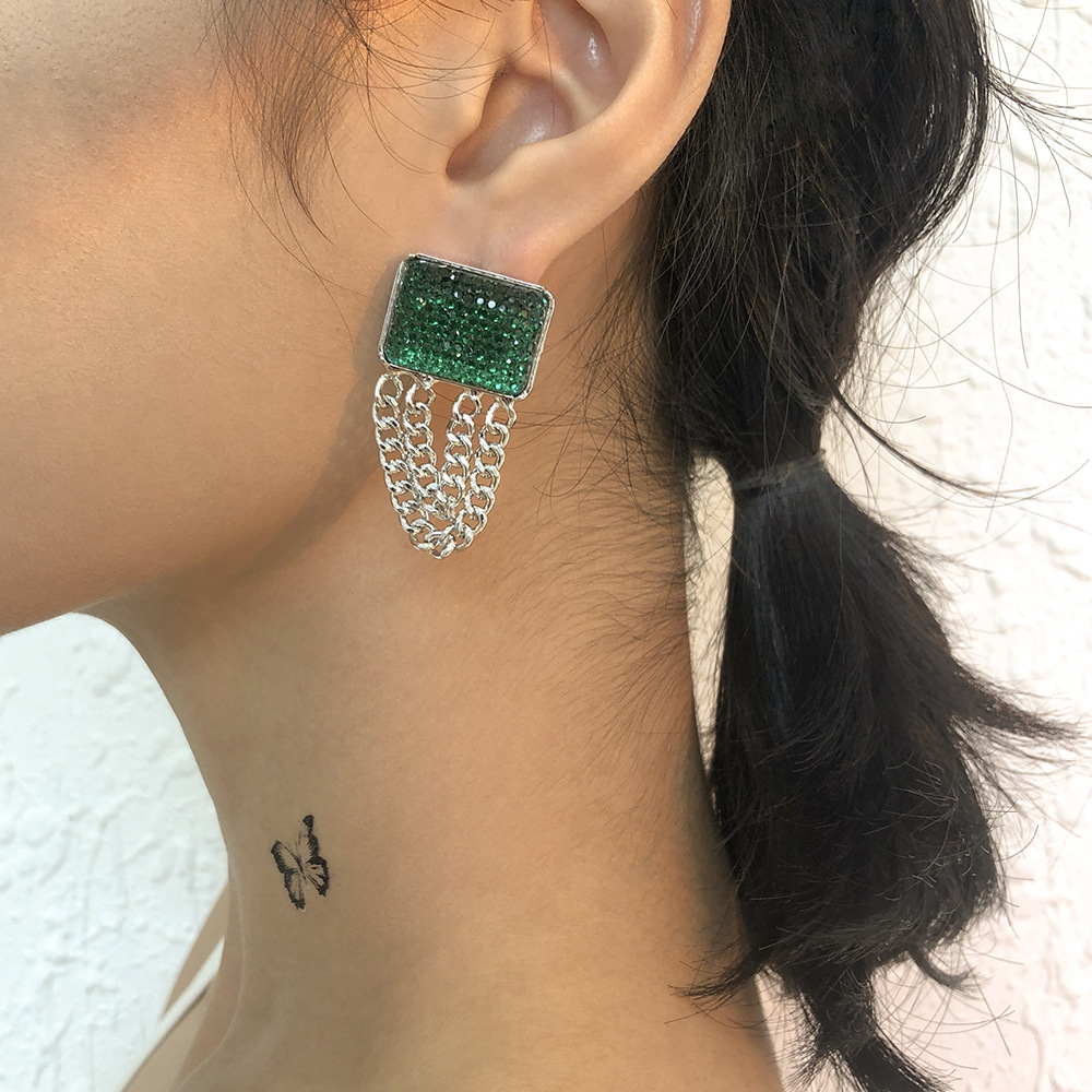 Product information:Material: alloy + imitation drillStyle: European and AmericanStyle: Women'sModeling: GeometryPackaging: Individually packedColor: purple, greenSize Information:Packing list:Earring x1
