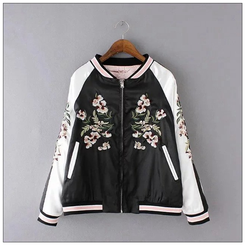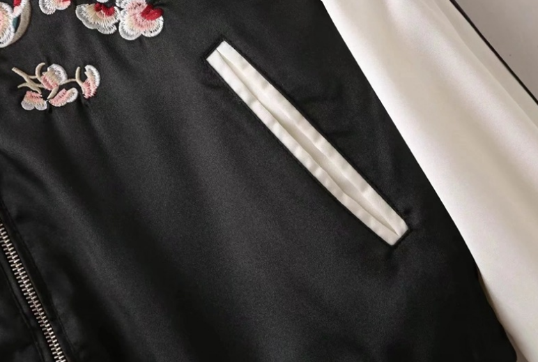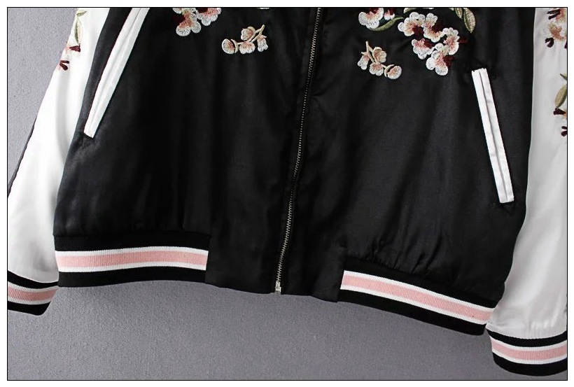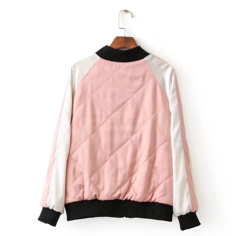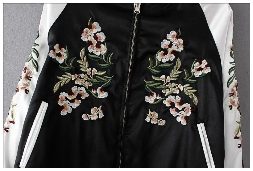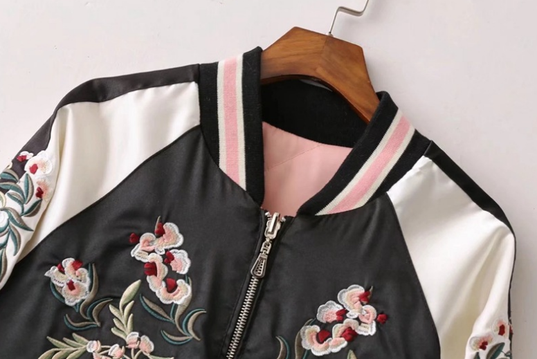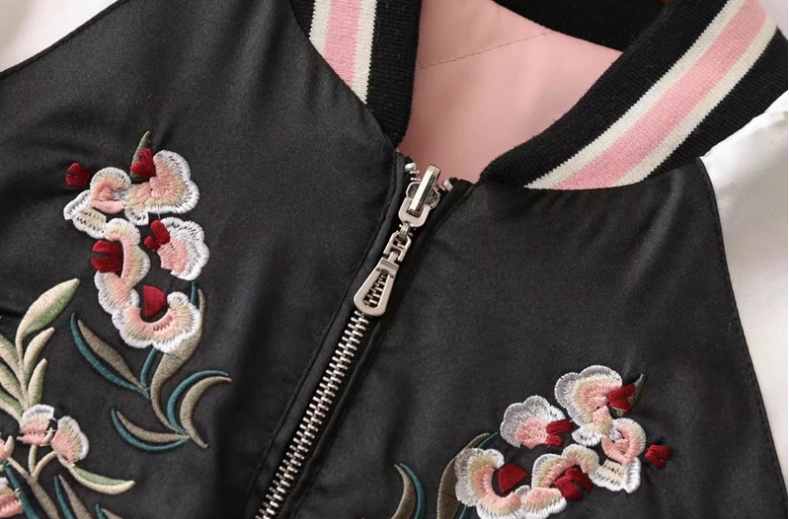 Flower Embroidery On Both Sides Wearing Stand Collar Quilted Baseball Uniform Jacket Cotton Coat