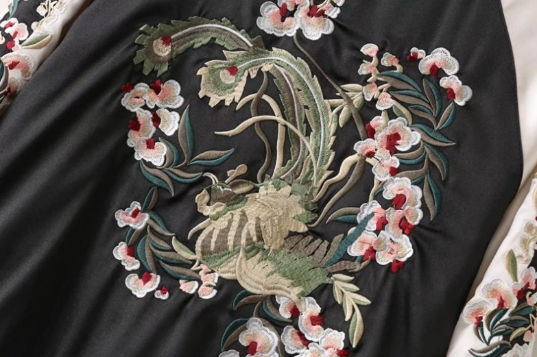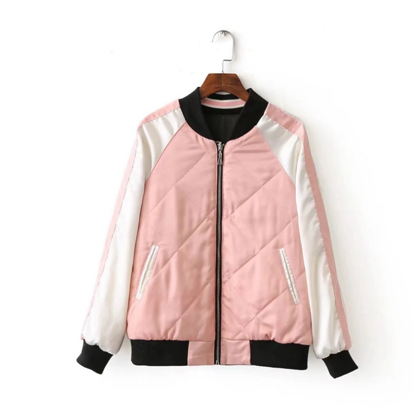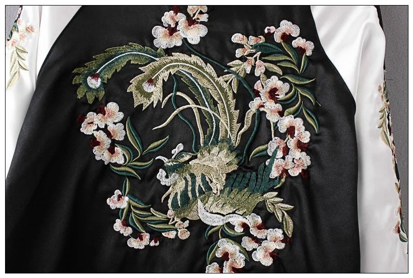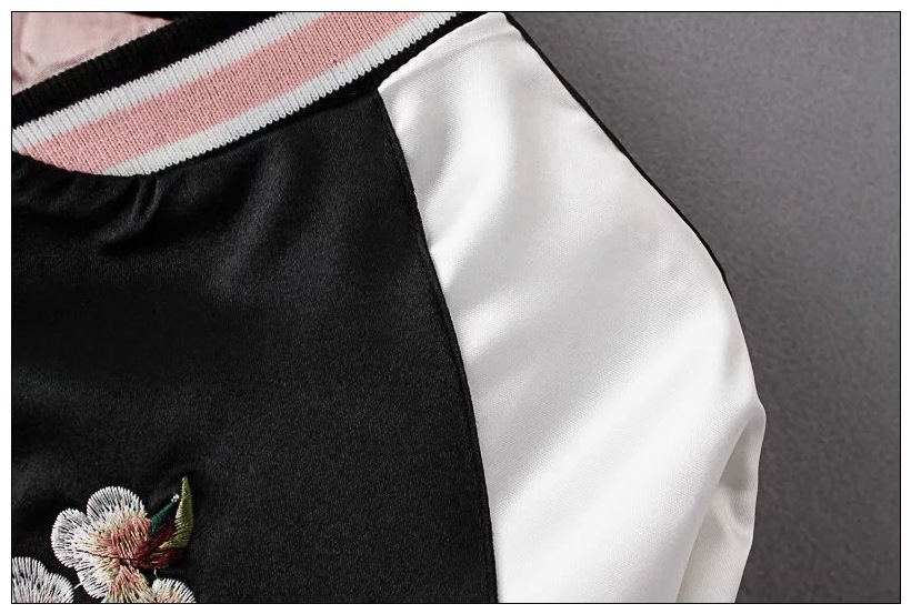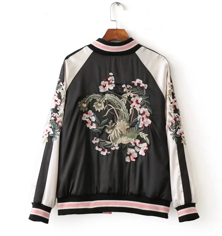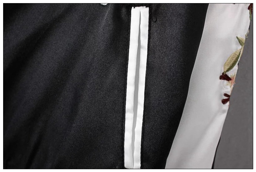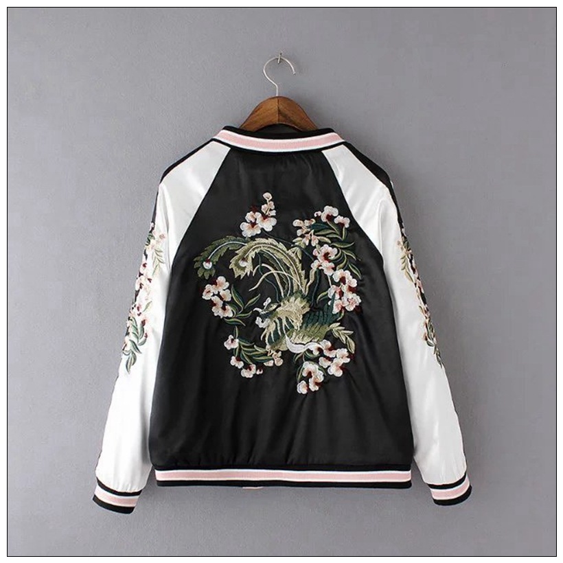 Flower Embroidery On Both Sides Wearing Stand Collar Quilted Baseball Uniform Jacket Cotton Coat