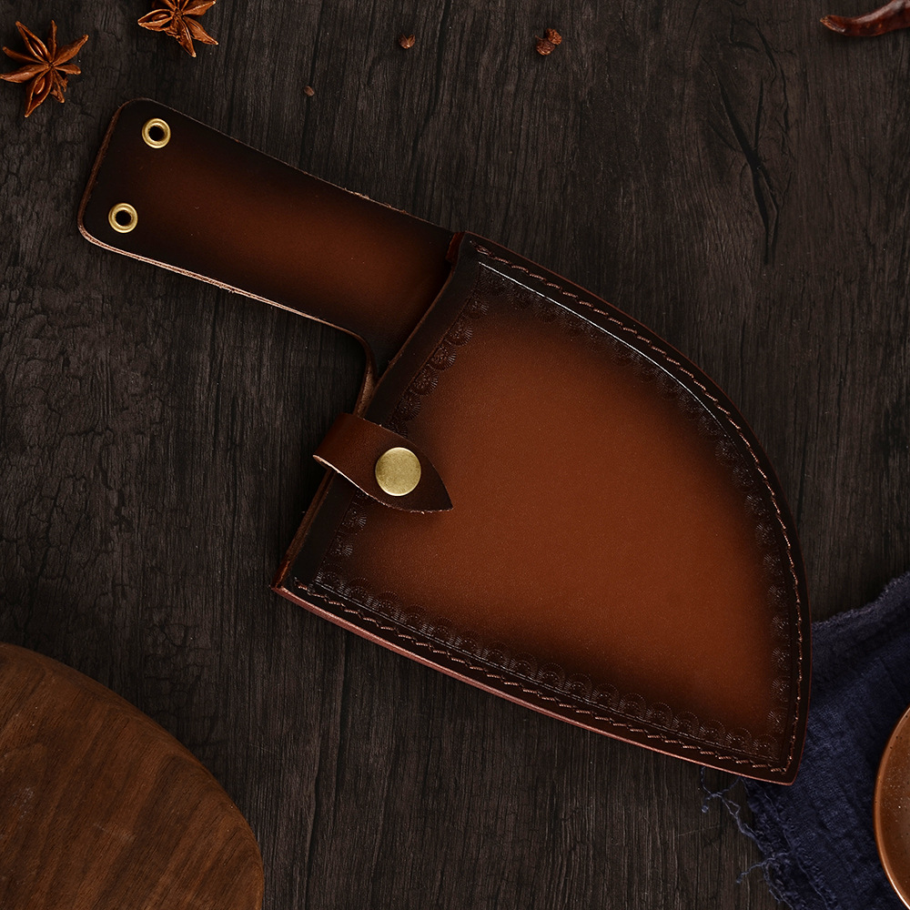 Whether it is ceramic knives, metal knives or other knife sleeves, they all have a characteristic, the blade is sharp. Therefore, when customizing the knife cover, the pu material is not considered, and the straight knife type is easy to cut when it meets the pu leather surface. Therefore, when customizing the knife cover, the thick and strong material of cowhide is often used. One is to protect the tool itself, and the other is to prevent the tool from falling off the leather surface.