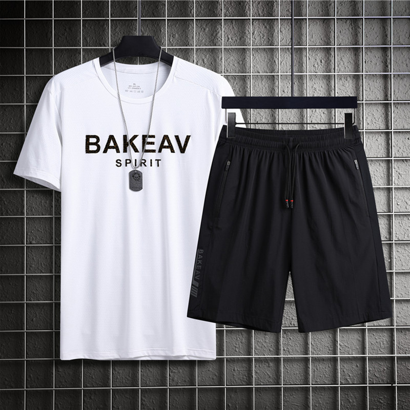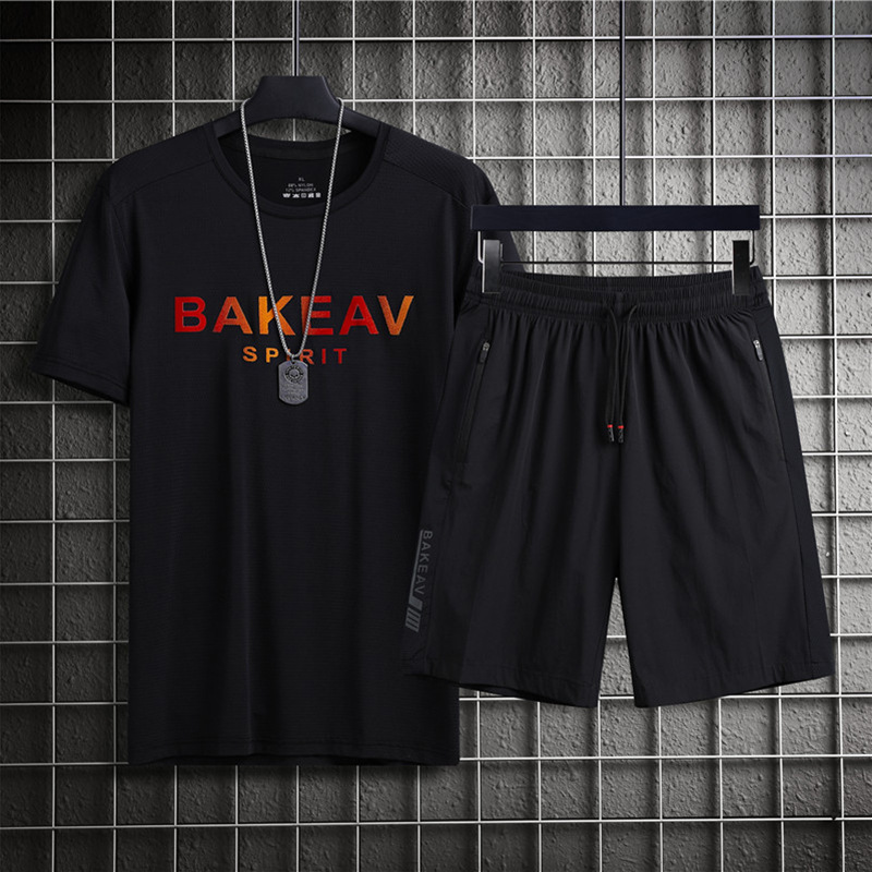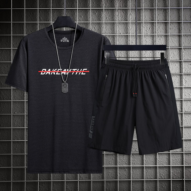 Ice Silk Leisure Sports Short-sleeved T-shirt Shorts Two-piece Suit