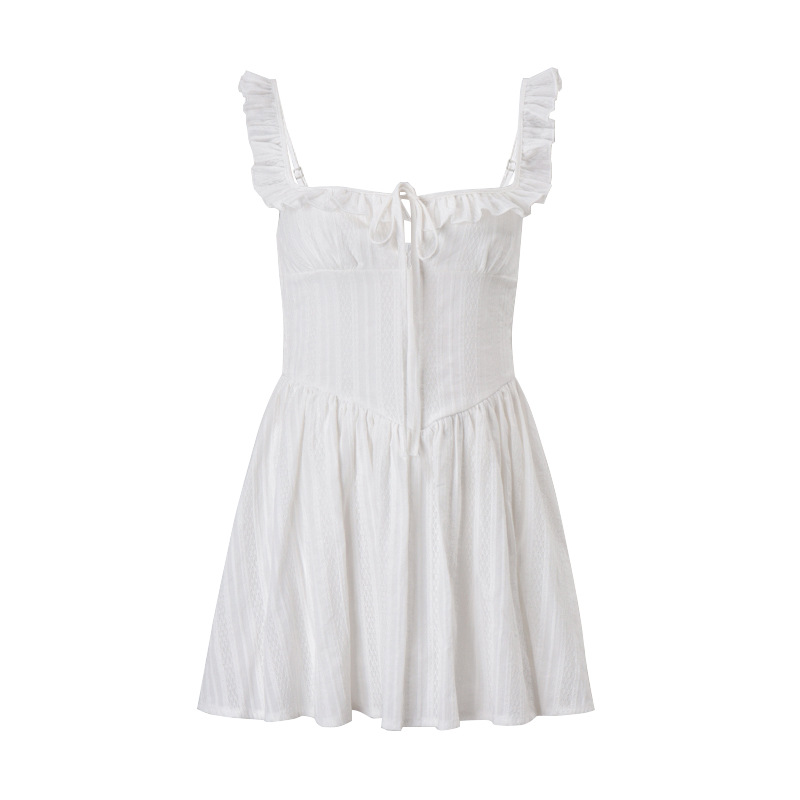 Product information: Skirt type: A- line skirt Color: White Waist type: high waist Size: S,M,L,XL Skirt length: short skirt Popular elements: lace-up Fabric name: Polyester Sleeve type: sleeveless