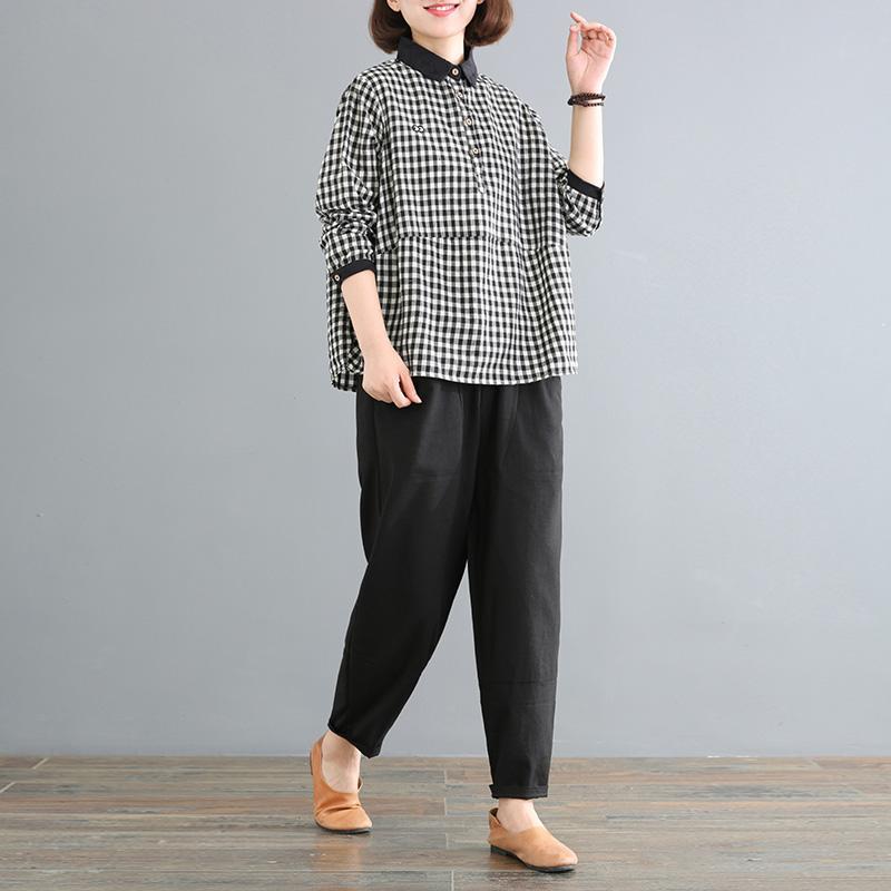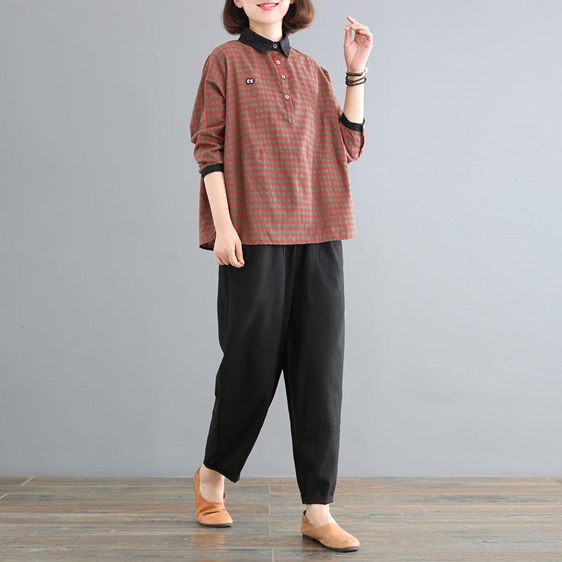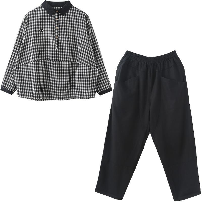 Color: Black and white grid + black pants, red and green grid + black pants
