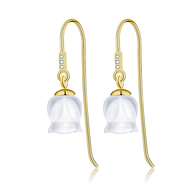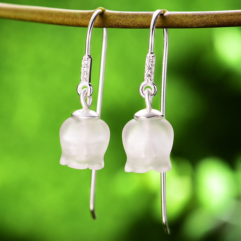 Original | lilies of the valley of the language of words carved crystal silver S925 female earrings with pure and fresh and natural romantic packets
