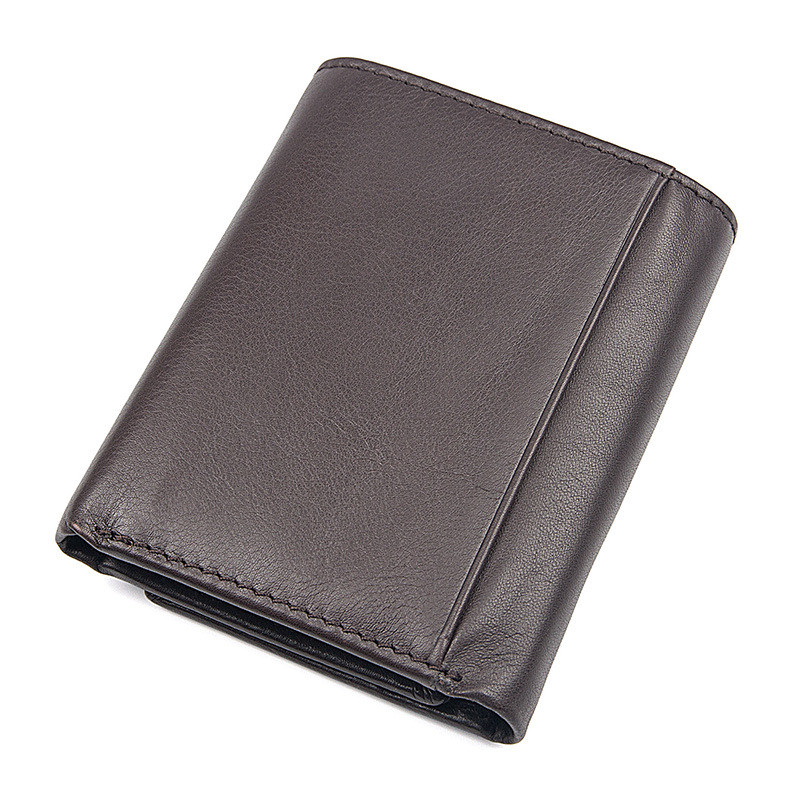 Material: LeatherCortex features: first layer cowhideWallet fold: 2 foldStyle: CasualPopular elements: car suturepattern: plainHardness: medium to soft