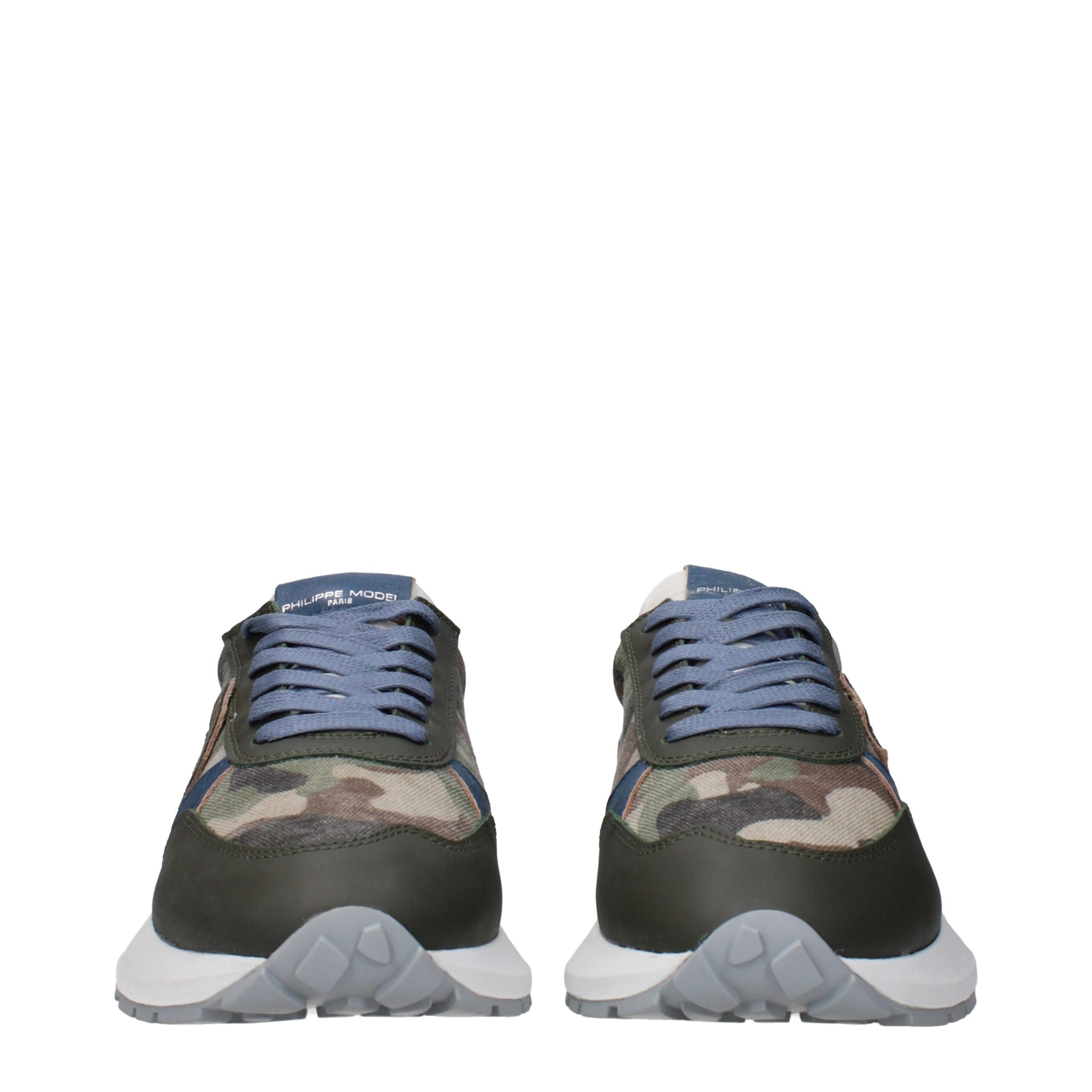 Description: The product with MPN ATLUZ0MIMETICOTB314 and code F83295 fabric in green is a sneakers designed by Philippe Model. It has features like front logo, back logo, vintage effect, aged effect, scratching effect.