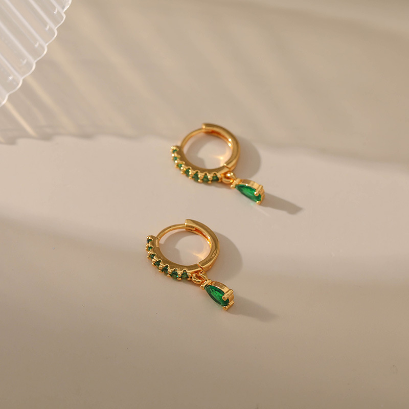 Copper Plating 18K Real Gold Vintage Circle Earrings Emerald