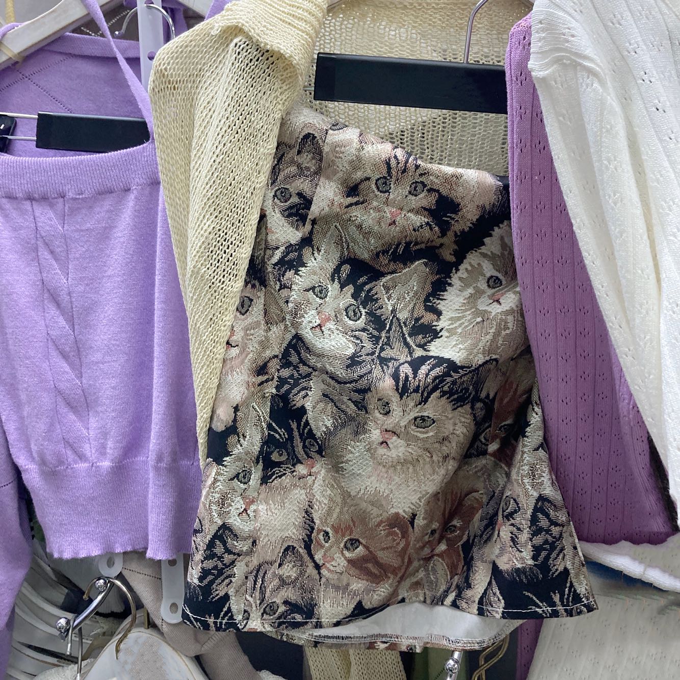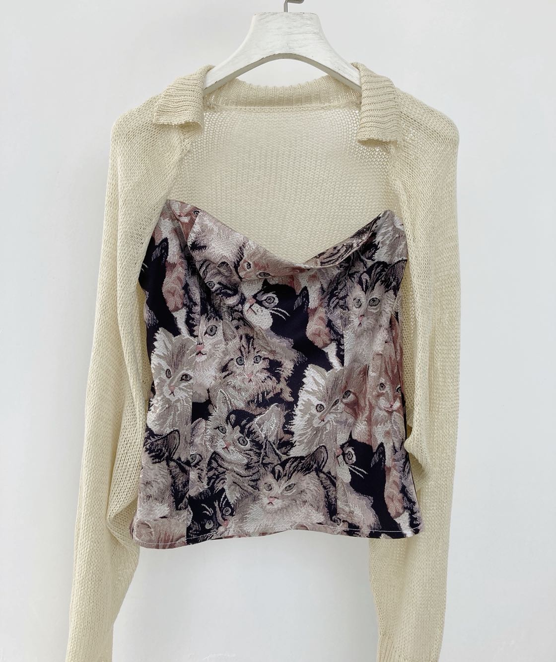Color Classification: Apricot loose sleeves, printed cat wrapped chest