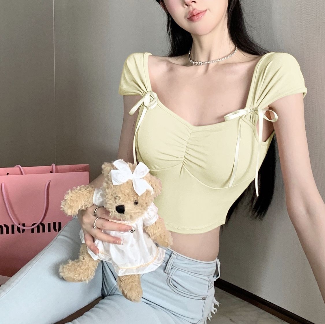Product information:Pattern: 3D effect Color: pink, yellow, black Style: slim fit Main fabric composition: Cotton Length: Short (40cm Applicable Gender: Female Applicable age group: Adult
