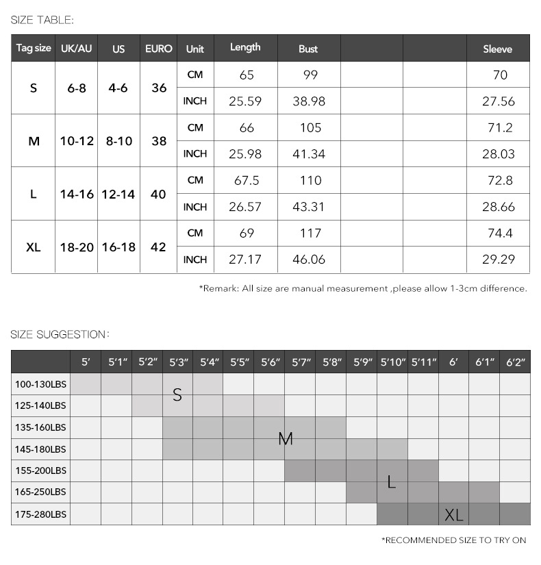 1. Asian sizes are 1 to 2 sizes smaller than European and American people. Choose the larger size if your size between two sizes. Please allow 2-3cm differences due to manual measurement. 2. Please check the size chart carefully before you buy the item, if you don't know how to choose size, please contact our customer service. 3.As you know, the different computers display colors differently, the color of the actual item may vary slightly from the following images.