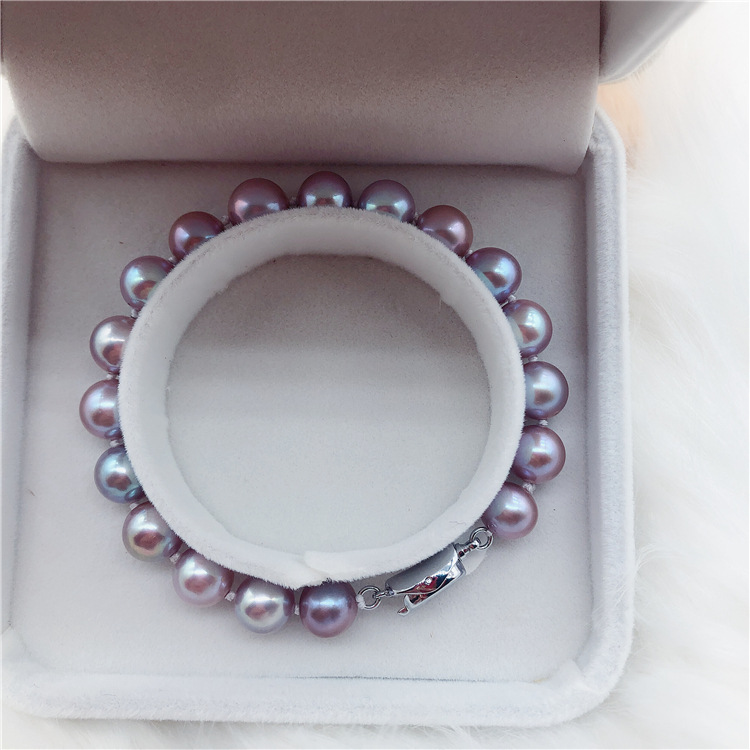 Product information:Series: Princess SeriesName: Pearl braceletCategory: Freshwater pearlsShape: nearly roundStyle: SimpleColor: PurpleSize: Pearl 9-10mmShape: geometric type
