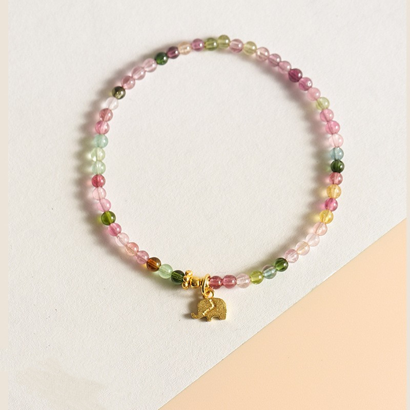 Size: 2.5mm faceted rainbow tourmaline bracelet-14cm (without tail), 2.5mm faceted rainbow tourmaline bracelet-15cm (without tail), 2.5mm faceted rainbow tourmaline bracelet-16cm (without tail), 2.5mm faceted rainbow tourmaline+ Extender chain, 2mm rainbow fluorite bracelet, 3.7mm small elephant tourmaline bracelet, tea color tourmaline (14+4 hand circumference)