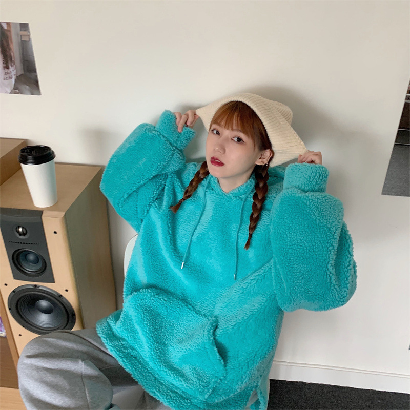 Product information:Fabric name: lambswool Color: white, Lake Blue Sleeve type: Lantern sleeve Size: M,L,XL,2XL,3XL,4XL Version: Loose Applicable Gender: Female Sleeve length: long sleeve