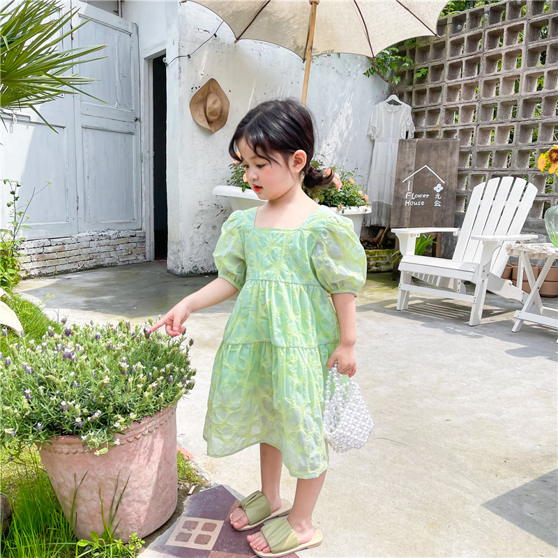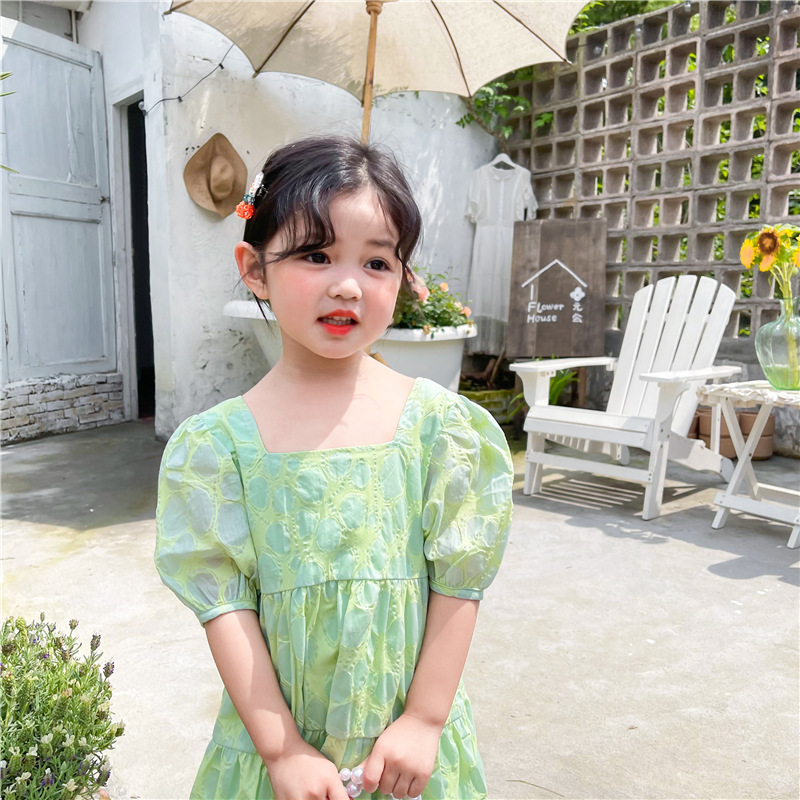 Color: DM1167036-salt green bubble short sleeve dress
