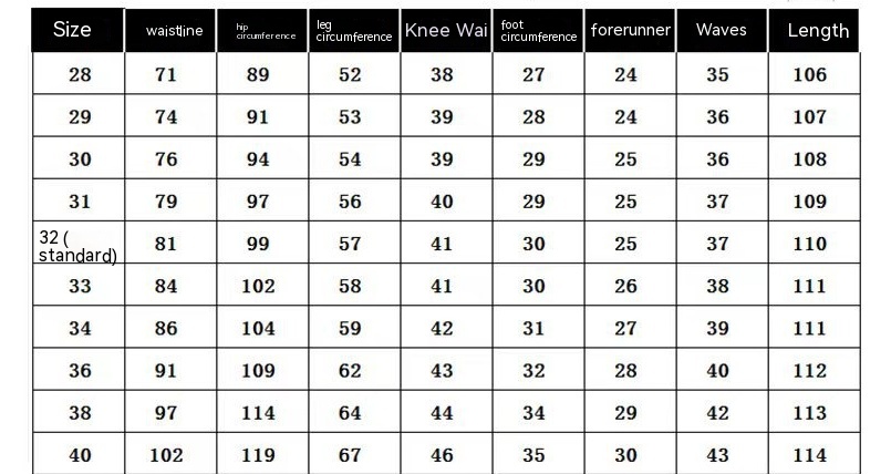 Size: 28, 29, 30, 31, 32, 33, 34, 36, 38, 40