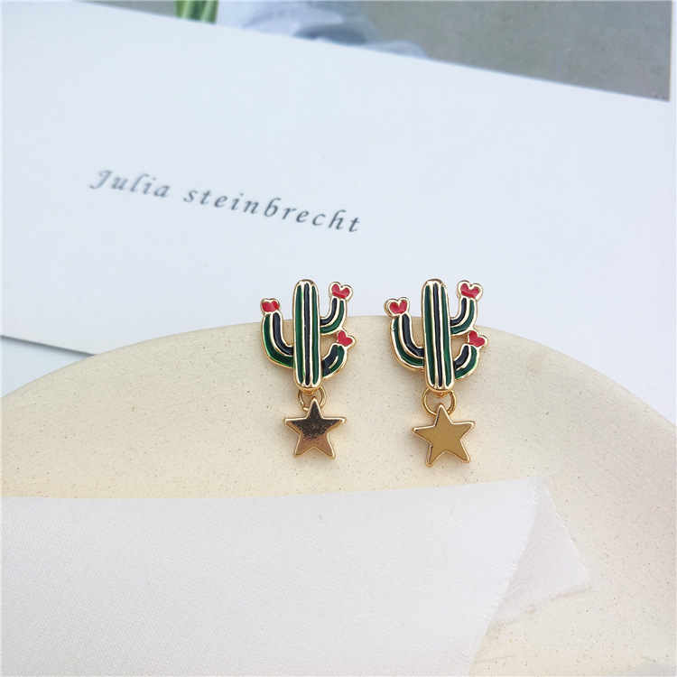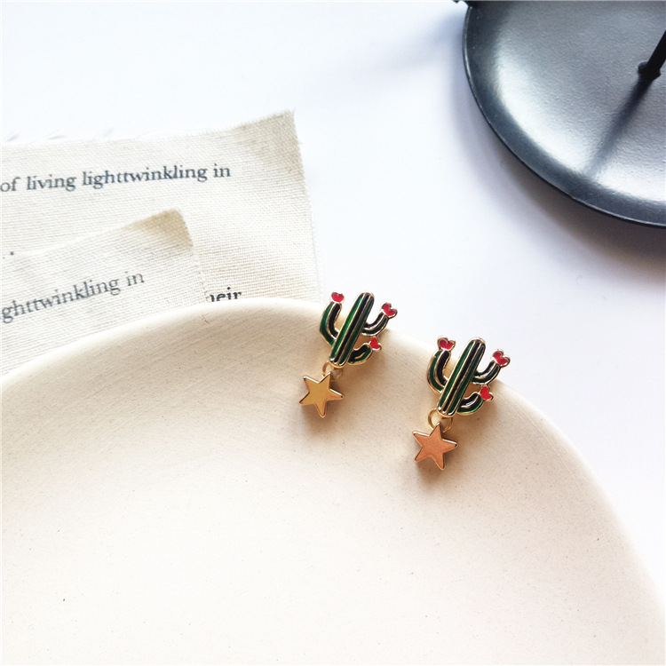 Style: Korean style Korean style / Korean styleMaterial: AlloyProcessing technology: electroplatingColor: cactus ear studs, cactus ear clips