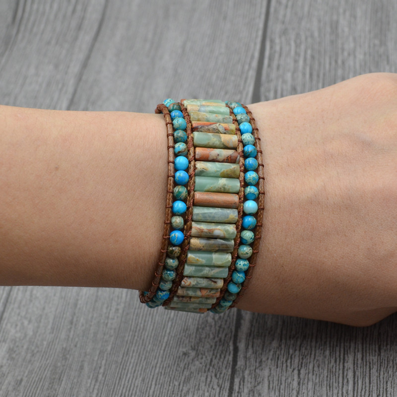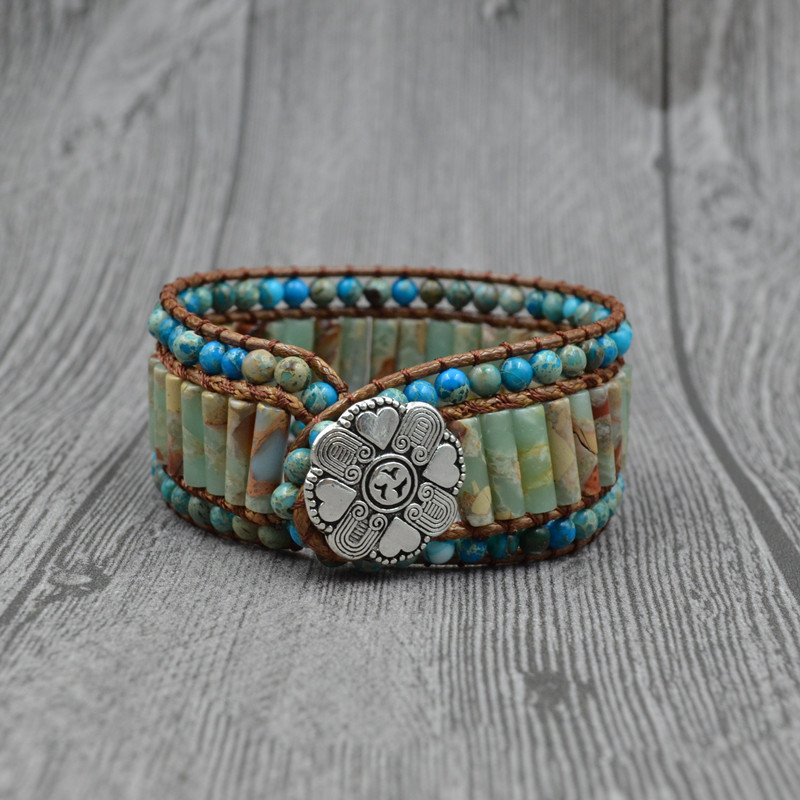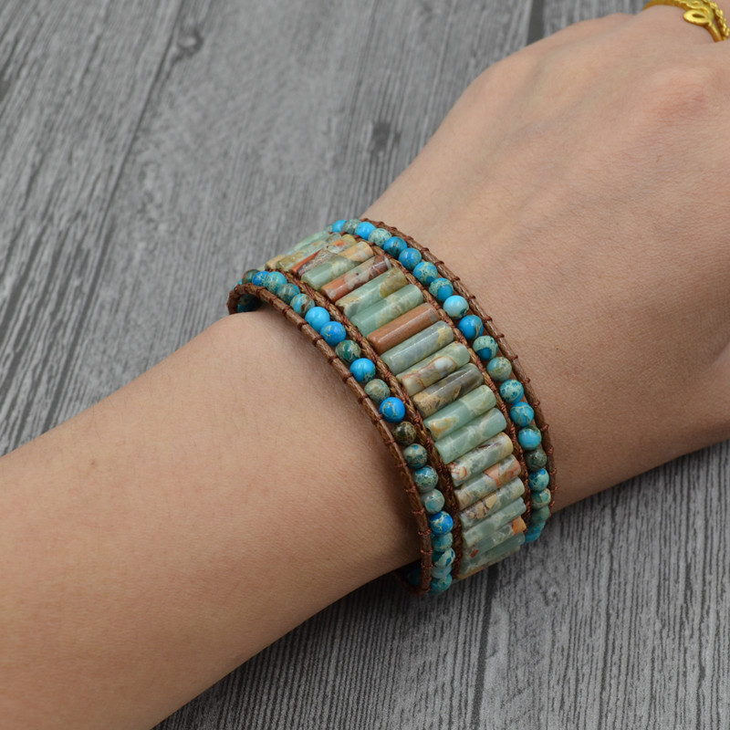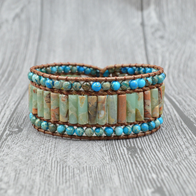 Multilayer woven natural imperial stone beaded bracelet